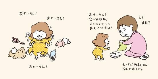 นัทสึมิเอาตุ๊กตาออกมาและจะเล่นกับแม่ต่อว่า ใครคือ นัทสึมิตัวจริง แม่เลยบอกว่า เล่นแบบนี้ไม่ได้ ถ้าลูกจะเล่นแบบนี้ แม่ไม่เล่นแล้ว และแล้ว แม่เล่นกับลูกต่อ ซึ่งให้แม่เดาต่อว่า นี่คืออะไรเอ่ย และแม่ก็เดาไม่ได้อีก เพราะล้อเลียนแม่ และพอท่าสุดท้าย นัทสึมิหลับไปแล้ว ดังนั้น แม่อุ้มนัทสึมิไปนอน
