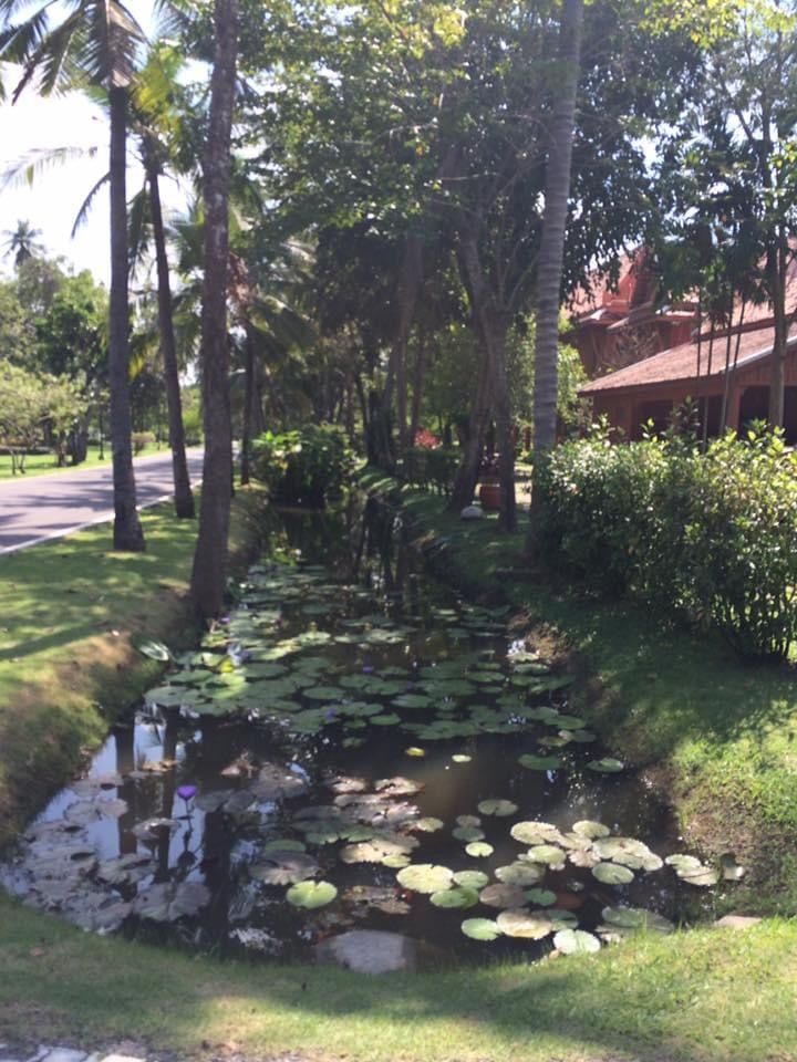 จัดตามแบบบ้านไทย มีไม้ประดับพร้อมอ่างบัว