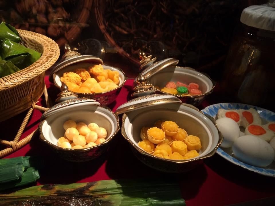 เมื่อเข้ามา เราจะพบเห็นสถานที่ขายตั๋วให้เข้าชม และมีการจัดแสดงจำลองขนมไทยสมัยโบราณให้ดู เพื่อนๆทุกคนสามารถดูรอบๆก่อนได้ค่ะ และเข้าไปชมขนมไทยจำลองน่ารักๆและน่ารับประทานได้