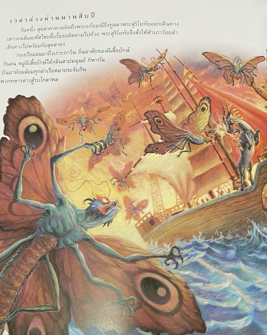 เมื่อมหาสมุทรสงบ สุดสาครและพวกเดินทางต่อไปเพื่อตามหาพระอภัยมณี