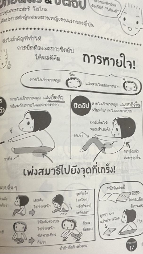 2. ยืดตัวและยกตัวขึ้นค่ะ ท่านี้เราทำหลายครั้งอยู่ โดยการยืดตัวและยกตัวขึ้น พร้อมหายใจเข้าและออกทางปาก เวลาทำ มันจะทำให้รู้สึกเหนื่อยในตอนแรก แต่พอทำไปมา มันก็หายเหนื่อย แถมช่วยลดพุงด้วยนะ
