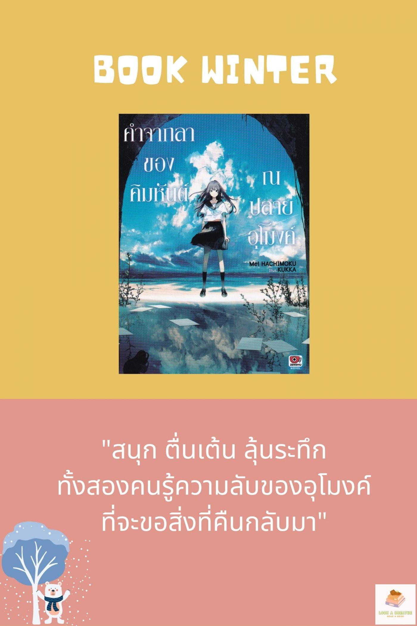 14.) คำจากลาของคิมหันต์ เป็นเรื่องราวของคนที่รู้ความลับของอุโมงค์กาลเวลาและใช้มันให้เป็นประโยชน์ (คุณพร้อมยังที่จะเรียนรู้ว่า คุณค่าของชีวิตที่เเท้จริงคืออะไร)