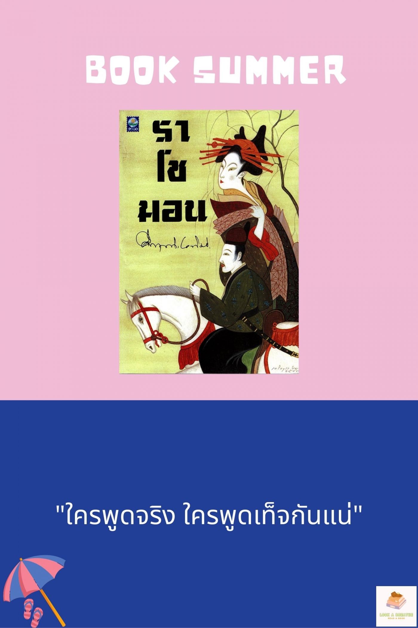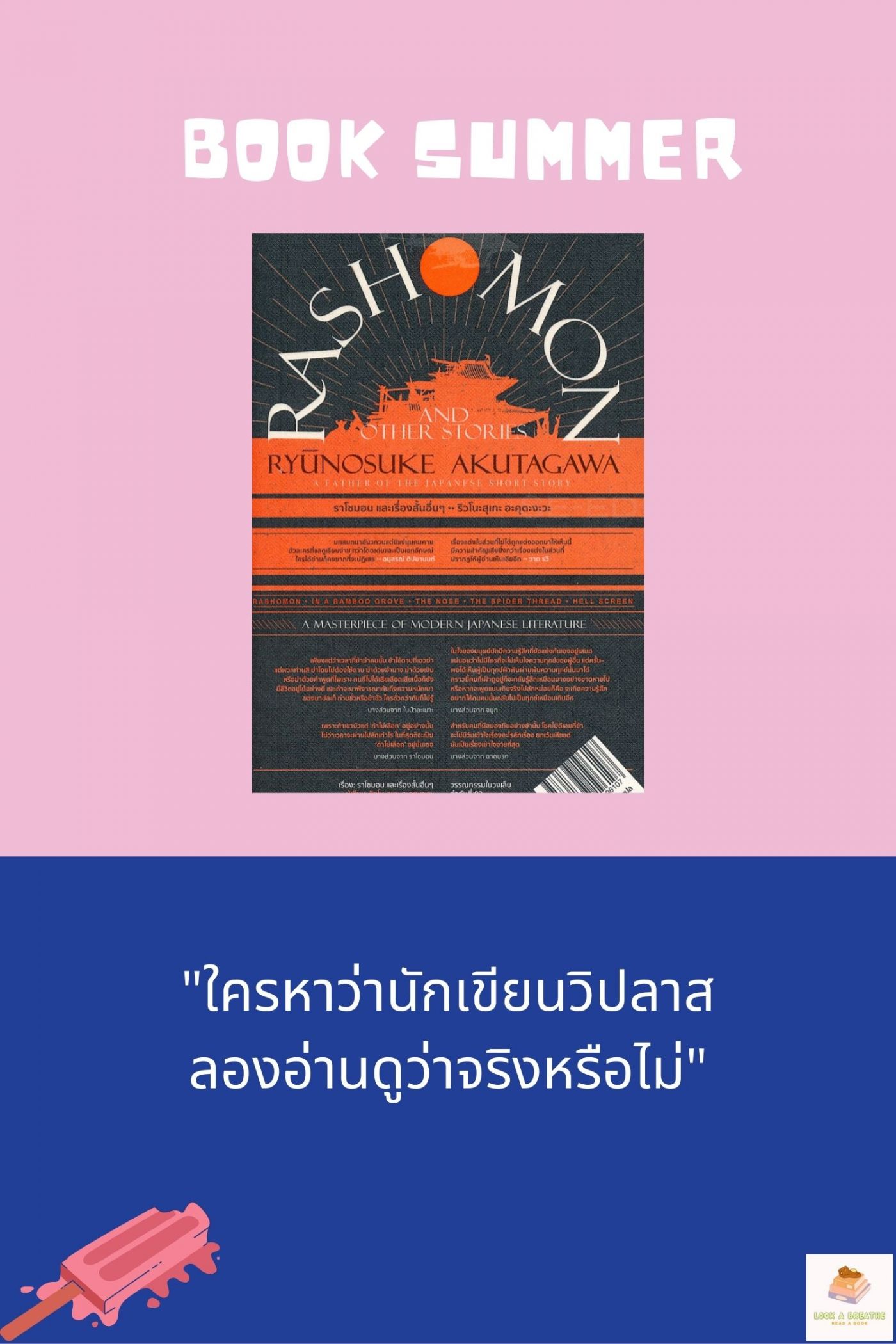 2.) ราโชมอน เป็นเรื่องราวของการจับเท็จว่าใครพูดจริงไม่จริง และเมื่อความจริงที่พูดจริงออกมานั้นกลับมีเพียงแค่หนึ่งเดียว คืออะไร ลองอ่านดูค่ะ