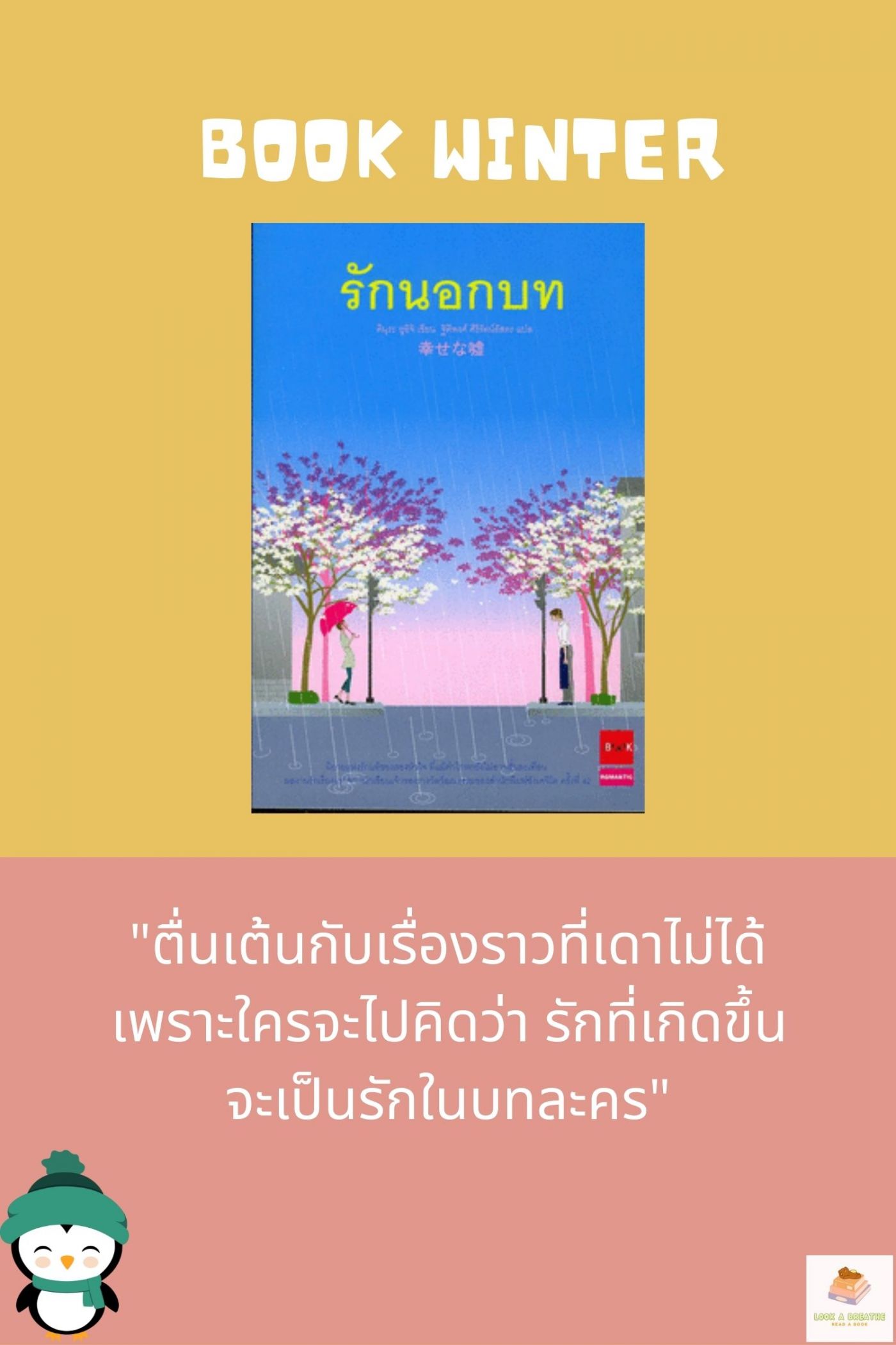 ก่อนปิดท้ายด้วยเรื่องสั้น "ร้านหนังสือเวลารัก" ประจำปี 2565 ที่เราแต่งขึ้นมาเป็นเรื่องราวแนวแฟนตาซี สืบสวนสอบสวนตามหาคน 35 คนที่หายไป และกลับได้ความหมายของชีวิตกลับคืนมา