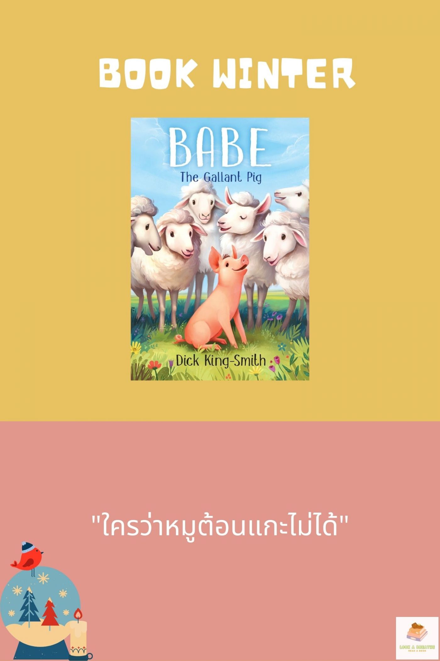 หมายเหตุ หนังสือเล่มหนึ่งที่รีวิวคือ เบ๊บ หมูน้อยหัวใจเทวดา ซึ่งเป็นเรื่องราวของหมูผู้ไม่ย้อท้อต่อชะตาชีวิตจนสามารถทำหน้าที่ต้อนแกะได้