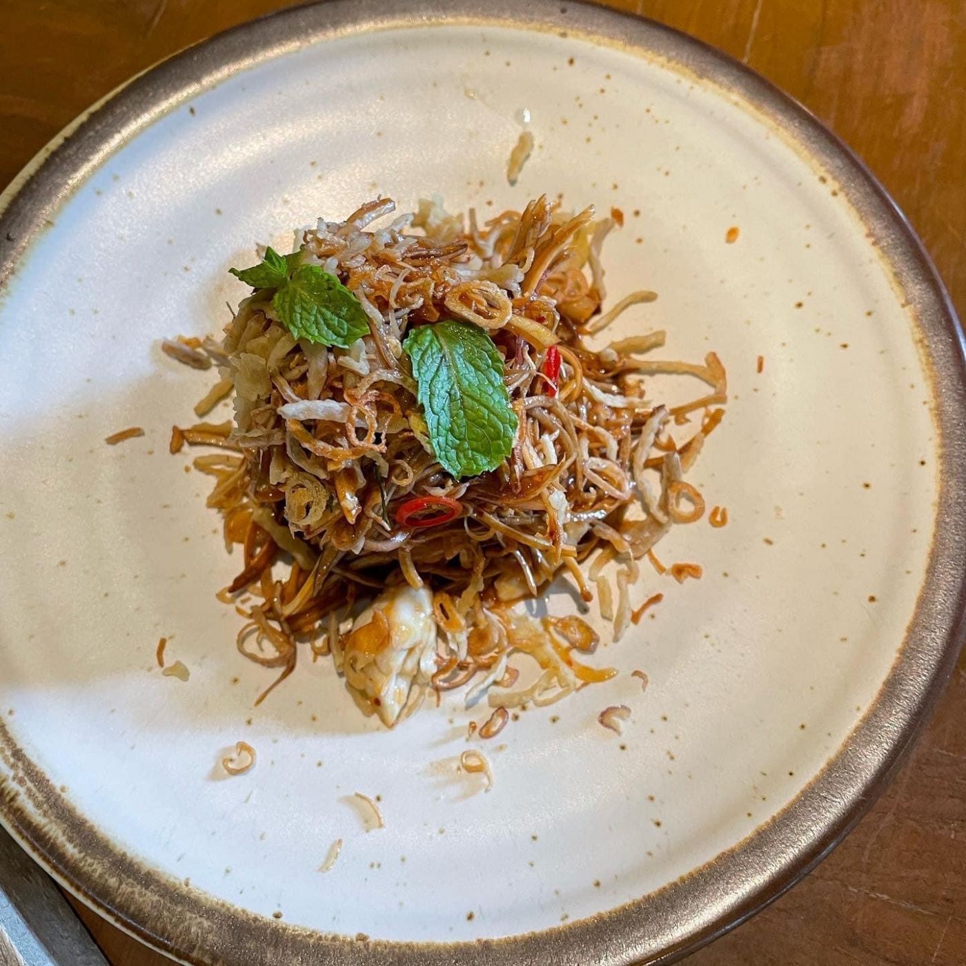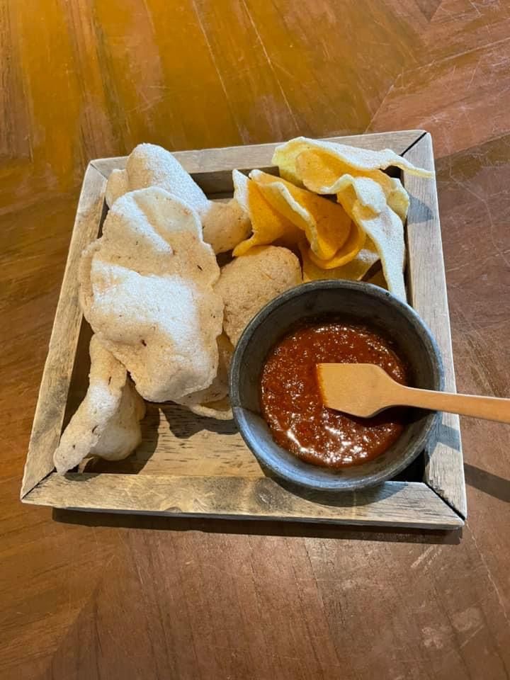 อาหารแรกที่นำมาเสริฟทุกโต๊ะคือ “ข้าวเกรียบ” ที่รสชาติอร่อยสุดๆ เพียงแค่ได้นำข้าวเกรียบจิ้มกับน้ำจิ้มสูตรพิเศษของทางร้าน และเมื่อนำข้าวเกรียบเข้าปากก็พบถึงรสชาติสไตล์ไทยที่สุดแสนวิเศษรออยู่ และอาหารก็เริ่มค่อยๆมาเสริฟทีละจาน ทีละจาน