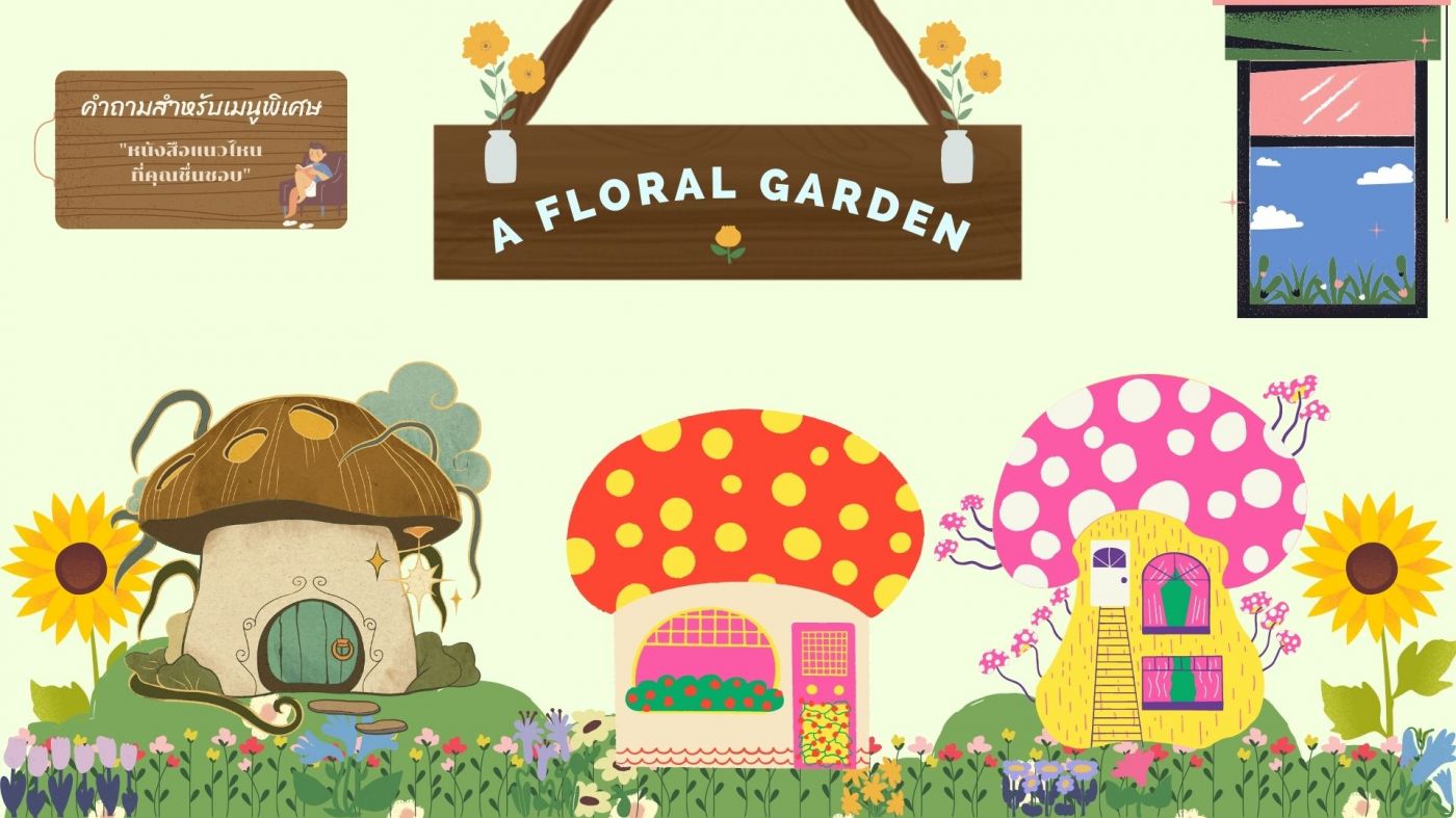 และทางร้านนำพาคุณเดินไปนั่งท่ามกลางสวนดอกไม้ที่สวยงาม ในบ้านเห็ดพิเศษที่มีเพียง ๓ หลัง และคุณถ่ายรูปไป อ่านไป เที่ยวไป พร้อมกับรออาหารเมนูพิเศษได้เลยค่ะ
