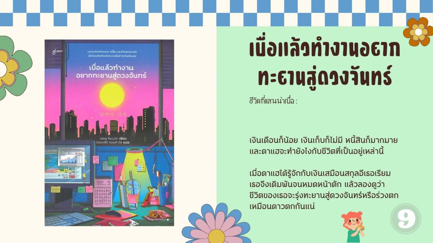 ในหนังสือจะมีตอนหนึ่งที่ดาแฮและเพื่อนไปพักโรงแรมสุดหรู ใช้ชีวิตสุดหรูให้คนเขาแอบแบบอิจฉา แต่ความเป็นจริงเบื้องหลัง ก็มีอะไรหลายอย่างที่ให้เราอ่าน และนึกถึง อนิจจา ความไม่เที่ยง แต่เราชอบหนังสือเล่มนี้ เพราะว่า สมจริงดี ตรงที่ว่า คนเราก็มักเผลอตัวไปกับเงินที่เราเห็นในกราฟ แต่กลับไม่ได้ใช้จริงๆ พอถึงคราวถอนมาจริง ก็กลายเป็นว่า ขาดทุนซะงั้น