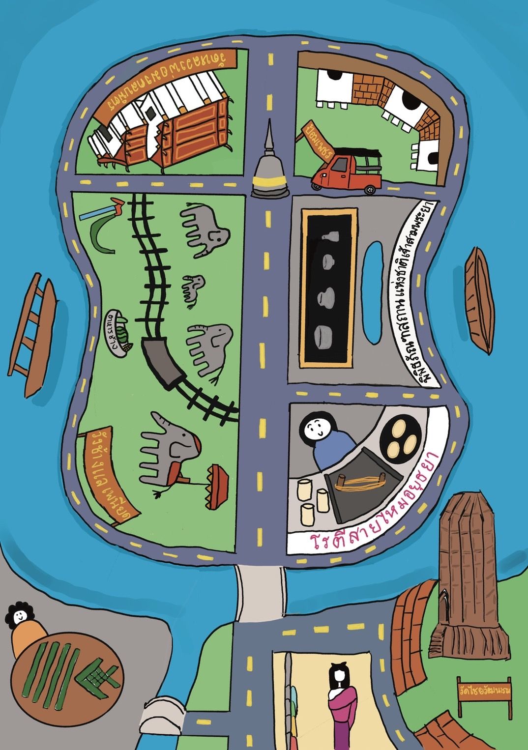 คุณครูกิ๊บถามว่าเหมียวอยากทำแบบไหนมากกว่ากันเหมียวชอบแบบเที่ยวกลางแจ้งมากกว่า คุณครูกิ๊บจึงแนะนำว่าให้เพิ่มพิพิธภัณฑ์และเอกลักษณ์ของความเป็นอยุธยาลงไปด้วยและไปลงรายละเอียดว่าจะให้ส่วนไหนเป็นสองมิติหรือสามมิติ