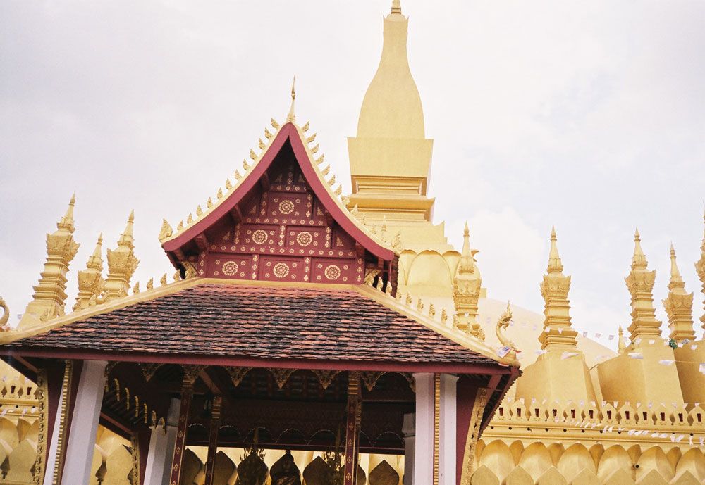 ลากกระเป๋ากว่าจะถึงพระธาตุก็ผ่านที่ทำงานต่างๆ เห็นเค้าออกมากินข้าวกันพอดีเพราะตอนนั้นก็จะเที่ยงแล้ว สาวชาวลาวเค้าใส่ผ้าถุงไปทำงานกัน งามดี พอถึงพระธาตุหลวงเดินผ่านลานจอดรถก็ตกใจอีกรอบ มันกว้างมากแต่ไม่มีรถจอดซักคันเลย สิ่งที่ประทับใจคือความชิลของพนักงานเฝ้าประตู เดินหายไปเม้าที่ไหนไม่รู้ ซักพักก็กลับมาเก็บเงิน 5000 กีบ (ประมาณ 20 บาท) แต่ความชิลของบ้านเมืองเค้าอะเนอะ พนักงานเก็บเงินก็ใจดีให้ฝากกระเป๋าไว้ได้ มีคนที่นั่งรออยู่แถวนั้นก็ช่วยดูให้เลยเดินตัวปลิวไปรอบพระธาตุได้