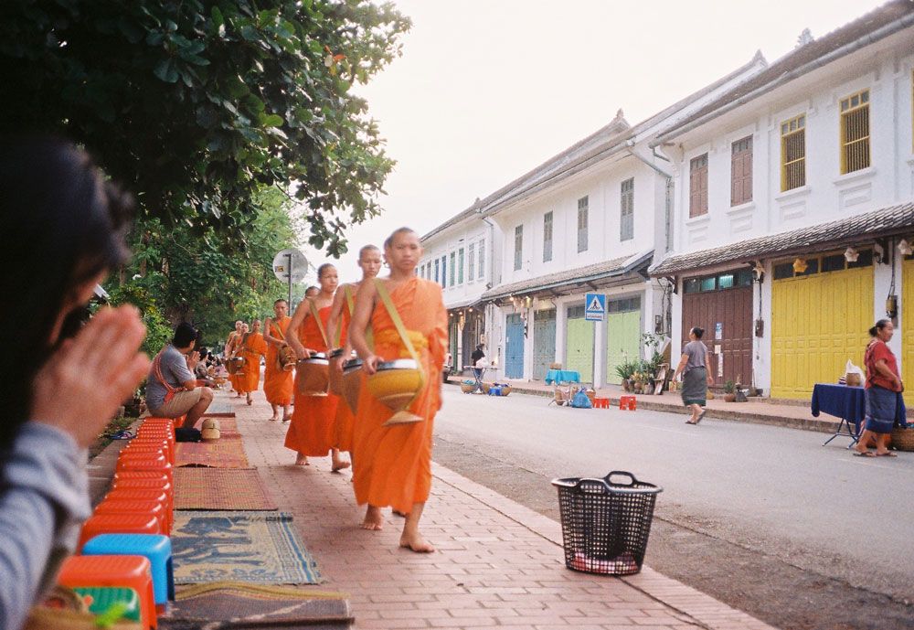 ตื่นเช้าวันสุดท้ายที่หลวงพระบาง เริ่มต้นด้วยการใส่บาตรข้าวเหนียวตามประเพณี แต่เป็นบรรยากาศที่ไม่ค่อยชอบเท่าไร เพราะไม่ชอบการทำบุญแบบธุรกิจ มีแต่นักท่องเที่ยวและแม่ค้าคอยมาขายข้าวเหนียวให้คนที่มาใส่บาตร แต่ในใจก็คิดว่า เอาหน่ะ มาเที่ยวทั้งที
