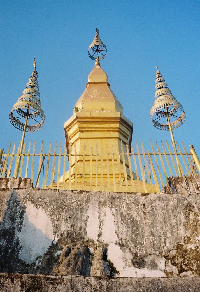 จบจากตรงนี้ก็เถียงกับเพื่อนหนักมากว่าจะเดินขึ้นพระธาตุพูสีเลยมั้ย เพราะบันไดขึ้นแดดร้อนมาก สุดท้ายเลยเดินไปขึ้นอีกด้านหนึ่งที่ร่มกว่า เดินไปหอบไปจนเกือบไม่ถึง แวะเป็นพักๆ บนบันไดสามร้อยกว่าขั้น พอถึงแล้วก็เจอนักท่องเที่ยวเยอะมากที่รอดูพระอาทิตย์ตก แต่เราไม่ดูแล้วจ้า ขอเผ่นก่อนเพราะร้อนมาก