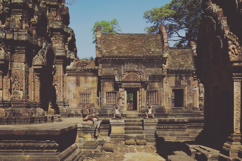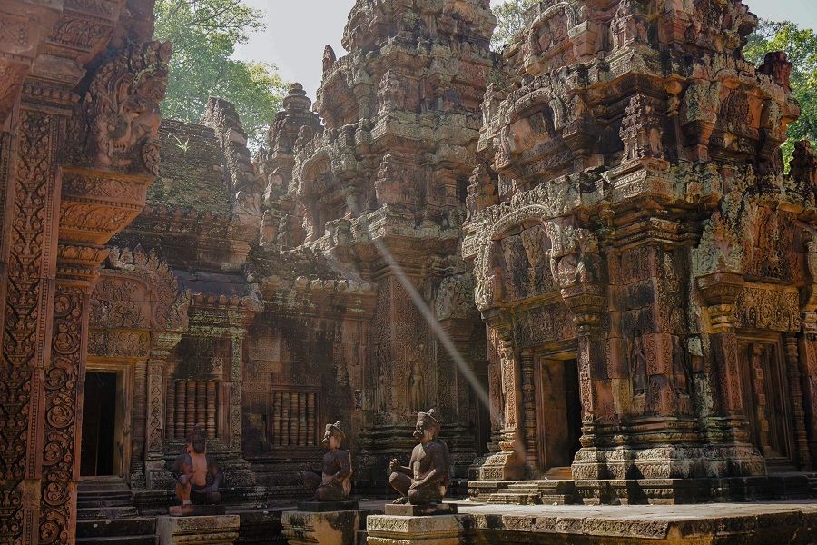 เรามาถึงอีกปราสาทที่ขึ้นชื่อว่าเป็นหนึ่งในปราสาทที่มีรูปสลักที่งดงามที่สุดในเสียมเรียบ เฉดสีแดงแสดจากหินทรายแดงที่ถูกแกะสลัก เผยให้เราเห็นขึ้นอย่างสะดุดตาตั้งแต่เริ่มเดินเข้าตัวปราสาท รูปแกะสลักสุดประณีตบนพื้นหินสีแดงที่สร้างขึ้นเพื่อถวายแก่พระศิวะ ยังคงดำรงเสน่ห์อันเป็นเอกลักษณ์ของปราสาทแห่งนี้ แม้เวลาจะล่วงมากว่าหนึ่งพันปีแล้วก็ตาม
