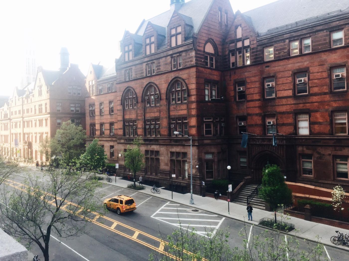 พอเราเดินเข้าไปในโคลัมเบีย โอโห้วว น่ารักมาก มีคนโยนลูกรักบี้เล่นกันในสนาม บางคนก็อ่านหนังสือหรือเปิดแลปท็อปทำงานกันบนหญ้า บางคนนั่งถอดเสื้ออาบแดดเลย แถมช่วงนี้เป็นช่วงรับปริญญาด้วย เดินผ่านไปเห็นคนใส่ชุดครุยยืนคุยกันอยู่ สีน่ารักมากก สีฟ้าอ่อนหม่น ๆ เทา ๆอยากมาเรียนที่นี่เลย ( เพราะอะไร อ่อ สีชุดครุยน่ารัก.. )