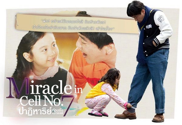 Miracle in cell No.7เป็นภาพยนตร์เกาหลีใต้ในปี2013 ที่กวาดรายได้ถล่มทลายและยังเป็นหนังเกาหลีที่ยอดเยี่ยมเเห่งปี2013 เเละยังคงเป็นหนึ่งในหนังเกาหลีที่ยอดเยี่ยมตลอดกาลของในใจใครหลายคนอีกด้วย โดยเรื่องย่อของภาพยนตร์ กล่าวถึง ยงกู คุณพ่อออทิสติกที่รักลูกสาวมากชื่อว่า เยซึงเพราะสำหรับเขาแล้วลูกสาวคือสิ่งล้ำค่าที่สุดในชีวิตของเขา ไม่ว่าลูกสาวต้องการอะไร เขาก็อยากจะให้ลูกได้มีความสุข เรื่องเกิดขึ้นที่ว่าเขาต้องการที่จะซื้อกระเป๋าเซเลอร์มูนให้กับลูกสาว แต่แล้วก็เกิดเรื่องที่ไม่คาดฝันขึ้นทำให้เขาถูกกล่าวหาว่าเป็นอาชญากรรม ฆ่าและจะข่มขืนเด็กสาวคนหนึ่งทั้งที่เขาไม่ได้ทำผิด แต่ต้องต้องเข้ามาอยู่ในห้องขังหมายเลข7 กับพวกนักโทษทำให้เขาไม่ได้พบลูกสาว จนเขาได้ขอความช่วยเหลือจากเพื่อนในห้องขัง ให้พาลูกสาวเข้ามาหา เยซึงจึงได้เข้ามาในห้องขังและอยู่กับพ่อออทิสติก และพวกเพื่อนๆในห้องขังก็ต่างพากันช่วยเหลือยงกู ที่จะไปให้ปากคำในศาลตามความจริงเพื่อล้างมลทินความผิด แต่ก็ไม่สำเร็จเพราะเด็กผู้หญิงที่ตายจากเหตุการณ์เป็นลูกสาวของท่านผบ.ตำรวจ ทำให้เขาต้องโทษประหารชีวิต พวกเขาจึงคิดวิธีหาทางออกจากคุกโดยขึ้นบอลลูนไป แต่ก็ไม่สำเร็จและในที่สุดเขาจึงโดนประหารชีวิต ทั้งที่ไม่ได้ทำอะไรผิด ทำให้เยซึงเมื่อเธอโตเป็นสาวขึ้นจึงกลับมารื้อคดีนี้อีกครั้งเพื่อที่จะลบล้างความผิดให้กับพ่อของเธอ