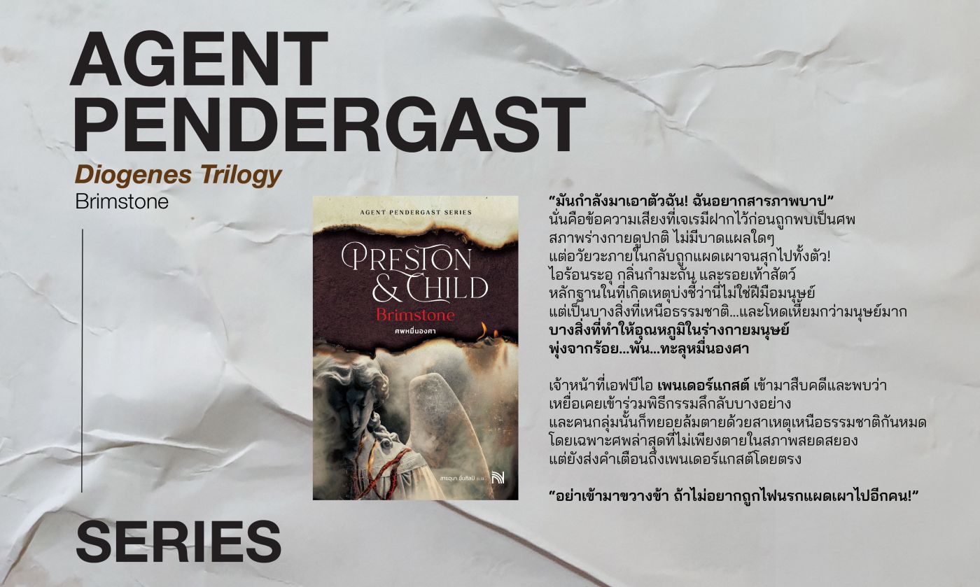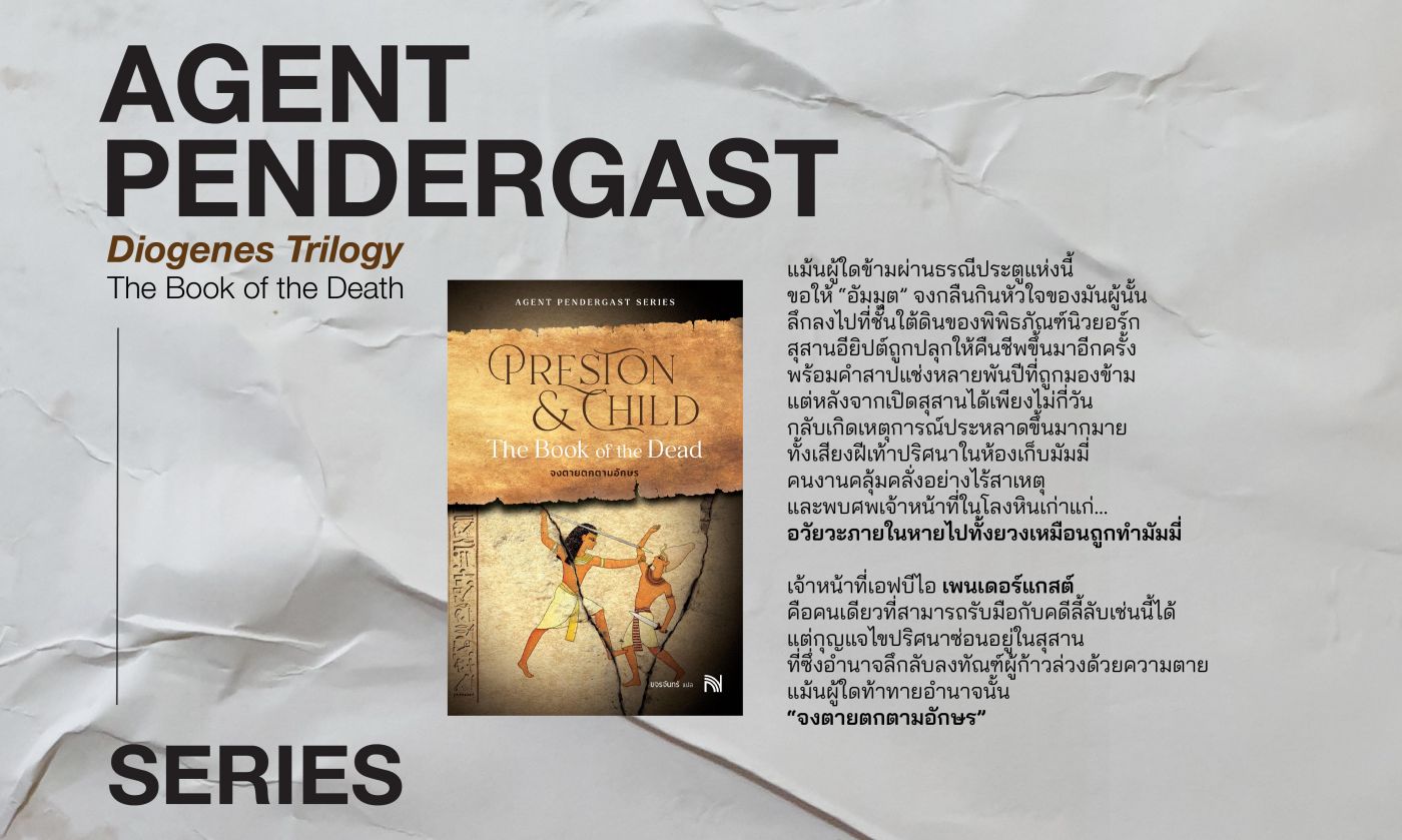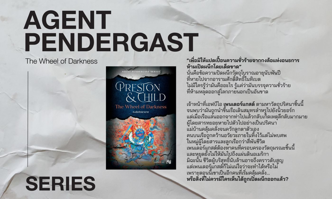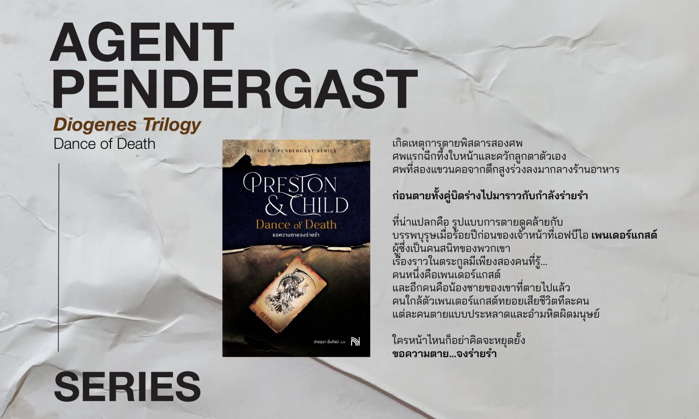 งานหนังสือที่ผ่านมา (มหกรรมหนังสือแห่งชาติครั้งที่ 27) เรามีโอกาสซื้อหนังสือในชุดซีรีส์นักสืบเพนเดอแกสต์ (Agent Pendergast Series) จากผู้เขียน Preston&Child ลิขสิทธิ์แปลและจำหน่ายในประเทศไทยโดยน้ำพุสำนักพิมพ์มาทั้งหมด 3 เล่มด้วยกัน คือ ขอความตายจงร่ายรำ : Dance of Death (2021*), จงตายตกตามอักษร : The Book of Death (2021*) และกงล้อจิตอาฆาต : The Wheel of Darkness (2022*)