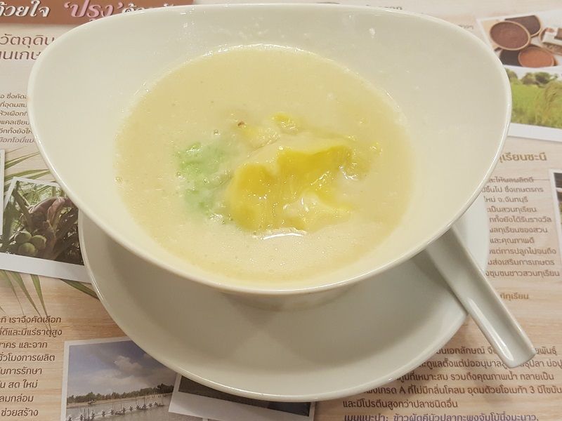 โลมาสั่งเองจ้า ตอนพนักงานเสิร์ฟยกมาวาง กลิ่นทุเรียนเย้ายวน ลอยมาแตะจมูกเลยอ่ะ หอม หวาน แต่น้ำไม่เข้มข้ม ข้าวเหนียวเป็นเม็ด ๆ ไม่นิ่ม สีเขียวสวยดี ทุเรียนแปะมาบนหน้านิดนึง แต่รสชาติก็โออยู่นะจ๊ะ :)