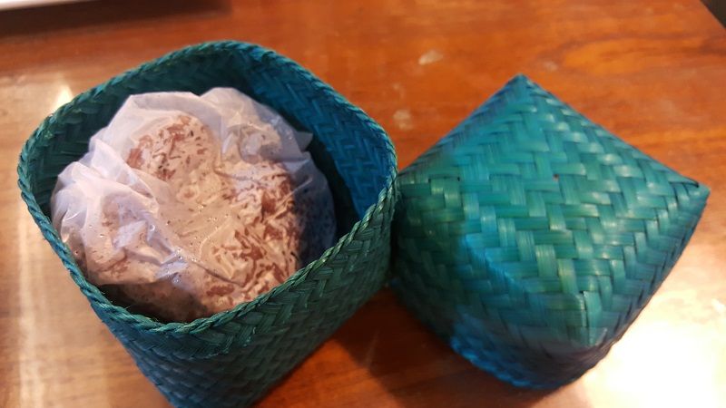 ข้าวเหนียวอยู่ในกล่องสานสีเขียว น่ารักเนอะ