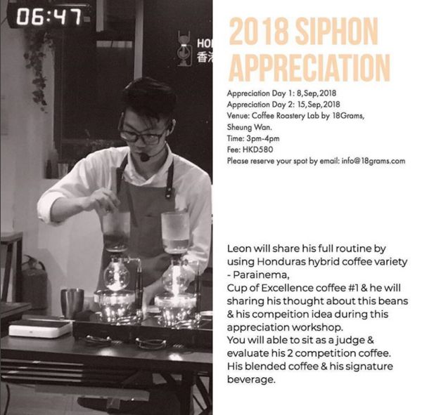 เราแวะร้านกาแฟ 18 grams ซึ่งเป็นร้านประจำของเราทั้งคู่ ตรงถนน Cannon Street ระหว่างทางจากคอสเวย์ เบย์ไปที่พักใหม่ตรงทิ้นห่าว ต้องวนหาที่จอดรถกันอยู่นานกว่าจะได้มานั่งจิบกาแฟสวย ๆ โชคดีที่วันนี้คนน้อยกว่าทุกครั้ง และยังพอมีโต๊ะว่าง เราเลยไม่ต้องไปแชร์โต๊ะกับใครเหมือนคราวก่อนทุกครั้งที่มา 18 grams เป็นร้าน Specialty Coffee ที่เปิดเมื่อปี ค.ศ.2010 สาขาที่คอสเวย์ เบย์ เป็นสาขาแรกที่เป็น Premium Espresso Bar ในร้านมีแค่ 3 โต๊ะ บริเวณด้านนอกมีบาร์เล็ก ๆนั่งได้ประมาณ 4-5 คน และโต๊ะเพียงตัวเดียว ไว้ให้ลูกค้าเสวนาจิบกาแฟ ตอนนี้ 18 grams มีถึง 8 สาขาทั่วฮ่องกง 6 ที่เป็นคาเฟ่และอีกสองที่เป็น Coffee Stand ส่วนสาขาที่เป็น Roastery Lab จะอยู่ตรงหว่านจ๋าย ฉันเคยอ่านเว็บไซต์ของร้าน บอกไว้ว่าเป้าหมายของทาง 18 grams คือการนำกาแฟคั่วบดระดับพรีเมียมสู่ฮ่องกง พวกเขาเชื่อว่ากาแฟที่ดีไม่ได้เริ่มต้นที่คาเฟ่ แต่เริ่มมาจากแหล่งปลูก จึงเสาะหาเมล็ดกาแฟจากทั่วโลกเพื่อนำมาคั่ว บด และชงด้วยความพิถีพิถัน เพื่อเสิร์ฟให้กับลูกค้าที่แวะเวียนมาที่ร้าน บาริสต้าที่นี่ถูกฝึกมาอย่างดี มีความรู้ดีเยี่ยมทั้งในภาคทฤษฎีและปฏิบัติ โดยเฉพาะบาริสต้า Leon เขาเพิ่งได้รับรางวัลอันดับสองในการแข่งขัน Hong Kong syphonnist coffee competition มาหมาด ๆ อ้ปป้าเล่าให้ฟังว่าไอ้เจ้าไซฟอนเนี่ย เป็นวัตถุซึ่งประกอบไปด้วยแก้วทรงกระบอกสำหรับใส่ผงกาแฟ กาต้มน้ำทรงกลม ฟิลเตอร์กรองกากกาแฟ และเตาทำความร้อน เหมือนอุปกรณ์ในห้องแลบวิทยาศาสตร์ยังงั้นเลย วิธีการชงก็คือบดเมล็ดกาแฟให้เป็นผงด้วยเครื่องบดกาแฟทั่วไป แล้วก็เทผงกาแฟลงไปในกระบอกแก้ว จากนั้นก็เติมน้ำร้อนลงไปในกาที่ใช้ต้ม แล้วก็เอาไปตั้งไฟ จนน้ำที่เดือดดันตัวขึ้นไปผสมกับผงกาแฟ แล้วก็ค่อย ๆไหลกลับลงมาในกาต้มน้ำ ส่วนกากกาแฟจะถูกกรองเอาไว้ด้วยฟิลเตอร์ ดูเท่อะไรขนาดนี้ เหมือนนักวิทยาศาสตร์กำลังทดลองสารเคมีอะไรสักอย่างเลย แต่จะว่าไปร้านที่ใช้ไซฟ่อนในการชงกาแฟในฮ่องกงมีน้อยมากถ้าเทียบกับทางฝั่งญี่ปุ่น ในฮ่องกงส่วนมากจะเป็นแฮนด์ดริปหรือชงจากเอสเพรสโซแมชชีน อ้ปป้าบอกว่าคงเป็นเพราะคนญี่ปุ่นชอบดื่มกาแฟแบบคลีน ๆ นั่นเอง