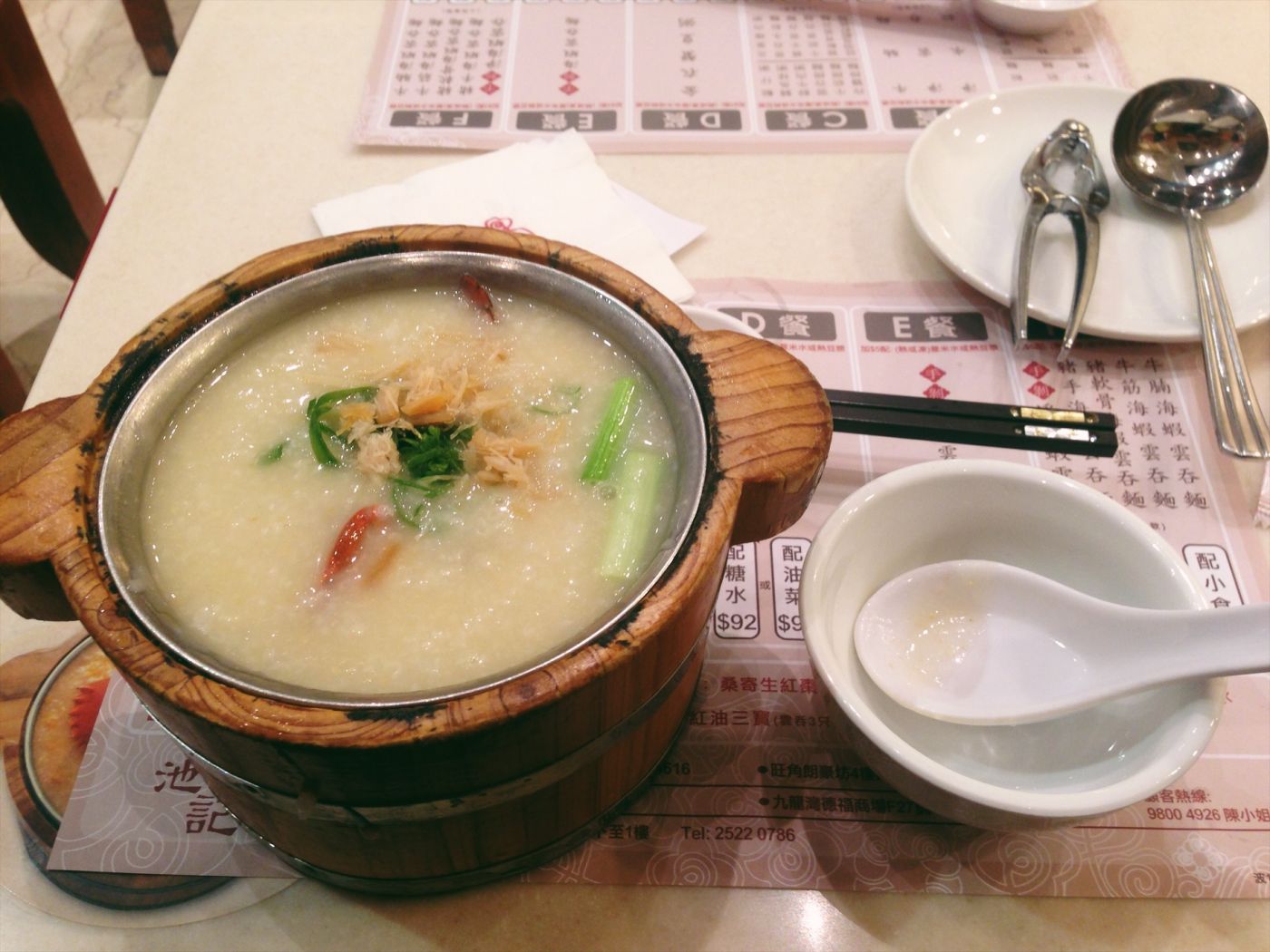 ข้ามมาฝั่งฮ่องกงกันบ้าง ร้านต่อมา คือร้าน Chee kei (ฉี่ เก) โจ๊กเจ้าดังมีหลายสาขาทั่วฮ่องกง แต่วันนี้พามาสาขาคอสเวย์ เวย์ ถนน Percival Street ใกล้ ๆ ที่พัก เดินมาไม่ไกล ร้านตั้งอยู่เยื้องกับห้าง Lee Theater  ซึ่งละแวกนั้นสตรีทฟู้ดและร้านต่าง ๆ เลื่องชื่ออยู่พอควร ร้านนี้เป็นร้านที่คนไทยแนะนำมาเหมือนกัน เมนูแนะนำคือโจ๊กปู หรือ Crab Congee ที่พี่ไทยบอกว่าเด็ดสะระตี่ต้องมาลองให้ได้ เอาวะ ไทยเชื่อไทย มาลิ้มลองโจ๊กปูชามละ hkd72 กัน โจ๊กปูไข่ทะเลของร้านนี้เสิร์ฟมาในถังไม้ขนาดเท่าชามข้าวทั่วไปแต่ก้นลึกกว่า ตัวถังเก็บความร้อนได้ถึงคำสุดท้าย ปูตัวขนาดไม่เล็กแต่ไม่ใหญ่ ไข่และเนื้อแน่นหวาน รสชาติกลมกล่อม ไข่ปูที่ผสมปนกับโจ๊ก ทำให้โจ๊กมีสีเหลืองคล้าย ๆ โจ๊กผสมข้าวโพด รสชาติหวานมันอร่อยมาก ฟาดซะเกลี้ยงชาม อยากจะสั่งอีกแต่ก็เกรงใจเงินในกระเป๋า เลยสั่งชาเย็นมาดูดแก้เขิน