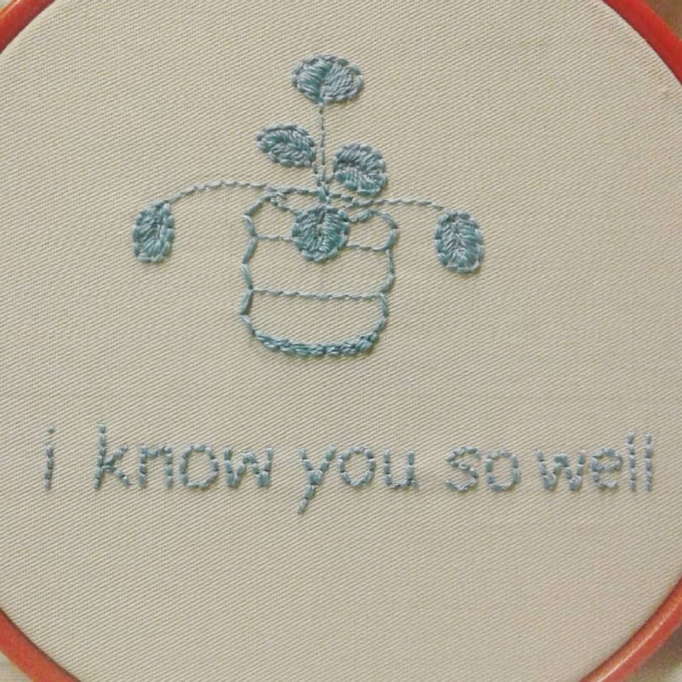 โปรเจ็คนี้ตั้งใจ ตั้งเป้าทำทั้งหมด 12 ใบ 12 ข้อความ 12 ภาพประกอบในแบบการปักผ้า