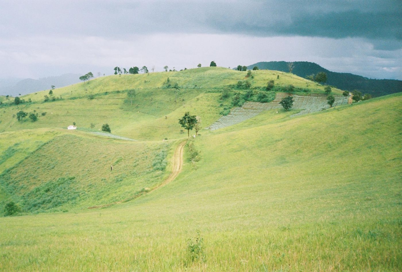 พอไปถึงตีนดอยจะต้องเดินขึ้นไปอีก1กิโล ซึ่งเราอยากหอบหมูกะทะไปกินแล้วก็กางเต้นท์บนยอดดอย พี่ไม้ก็ได้เตือนแล้วว่านอนตีนดอยดีกว่ามั้ยแต่เราก็รั้นจนพี่เขายอมบอกไปก็ไป เราก็ดีใจวาดฝันไว้สวยงามว่าจะได้นั่งกินหมูกะทะพร้อมกับชมพระอาทิตย์ตกบนยอดดอย เดินแค่หนึ่งกิโลเองแกร ชิลๆ เหมือนดินไปหน้าปากซอย