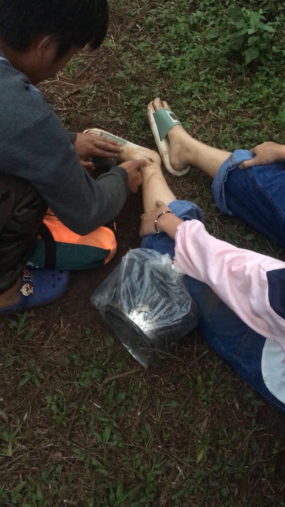แต่ความจริงคือเรากับเพื่อนช่วยกันถือของคนล่ะข้างจากจุดจอดรถไปทางขึ้นดอยประมาณยี่สิบก้าว คือนี่ยังไม่ได้เริ่มเดินขึ้นนะแค่เดินไปปากทางขึ้นก็เหนื่อยแล้ว ของก็หนัก จนต้องหยุดพัก จนพี่ไม้ต้องมาแบกให้แทนแล้วให้เรากับเพื่อนถือของเบาๆ