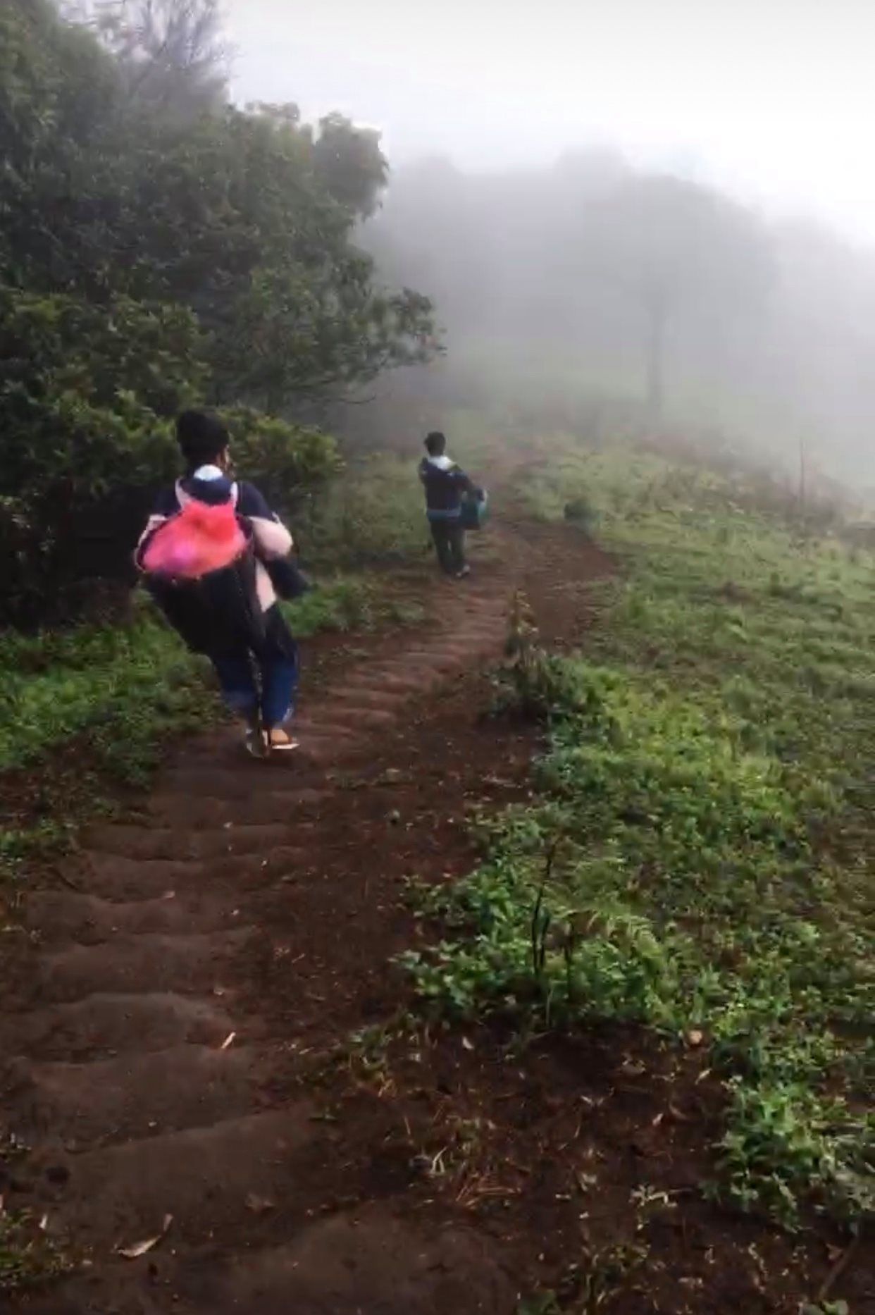 หลังจากใช้เวลาอยู่บนดอยพอสมควรแล้วก็ถึงเวลาเตรียมตัวเก็บของกลับ โดยพี่ไม้เป็นคนแบกกลับเหมือนเดิม บอกเลยขาลงชิลกว่าตอนขึ้นมาเยอะมากกกแต่ก็ต้องเดินระวังหน่อยทางลื่นเพราะฝนตกเมื่อคืน