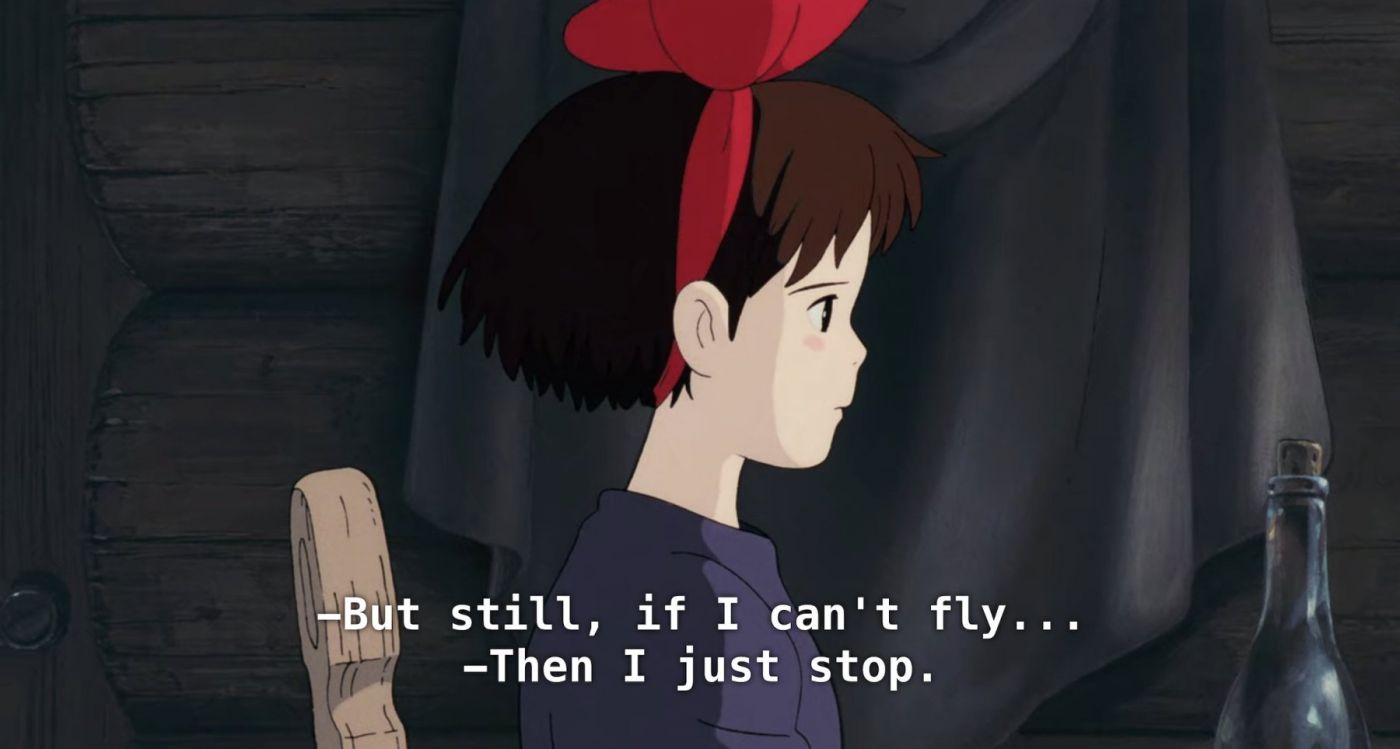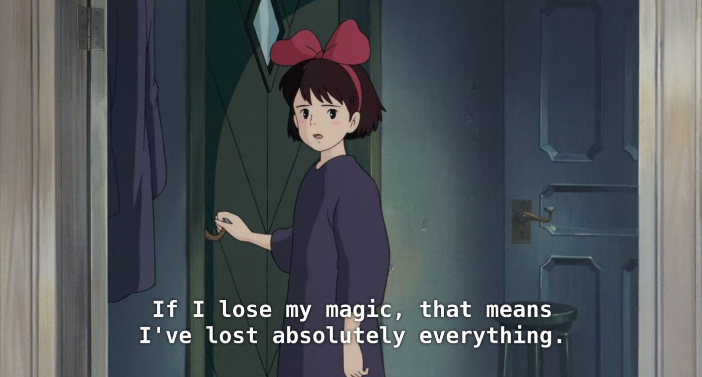 เราชอบทั้งโทนเรื่องและเนื้อเรื่องของหนังเลยค่ะ มันทั้งอบอุ่น ดูแล้วเหมือนได้รับการเยียวยาช่วงนี้เรากำลังเริ่มหัดเขียนนิยายค่ะ จู่ๆเราก็รู้สึกว่าเราเขียนนิยายไม่ได้ มันเครียด มันกังวล มันคิดหลายสิ่งหลายอย่าง แล้วเราก็หงุดหงิดตัวเองมากเลยค่ะที่มันเกิดเหตุการณ์แบบนี้เกิดขึ้น แต่ตอนนั้นเรารู้สึกว่าเราเขียนมันออกมาไม่ได้เลย แม้จะอยากเขียนออกมาแค่ไหน เราอ่านหนังสือ ฟังเพลง แล้วก็จนกระทั่งมาดูหนังเรื่องนี้เราเริ่มรู้สึกว่าเรารู้สึกอะไรบางอย่างกับฉากที่ตั้งแต่เวทย์มนต์ของแม่มดน้อยกิกิหายไปค่ะ มันทำให้เราคิดถึงการเขียนของเรา แต่ว่าดูไปดูมาเราคิดว่าคำว่าเวทย์มนตร์ในที่นี้มันสื่อถึงได้หลายๆอย่างต่อคนดูได้ค่ะ ไม่ว่าจะเป็นความสามารถ หรือสิ่งอะไรที่เราภูมิใจนักภูมิใจนักหนาอย่างในเรื่องนี้เวทย์มนตร์ของแม่มดน้อยกิกิก็คือบินบนไม้กวาดและสามารถสื่อสารกับแมวได้ใช่ไหมล่ะคะ พอมาวันหนึ่งความาสามารถนั้นมันหายไป กิกิไปไม่เป็นเลยค่ะบางครั้งฉันเองก็มีเวลาที่วาดรูปไม่ได้เหมือนกัน… ถ้าฉันทำมันไม่ได้ในตอนนั้น ฉันก็แค่หยุด ออกไปเดินเล่น งีบตอนกลางวัน แล้วก็ไม่ทำอะไรเลย แต่หลังจากนั้นฉันก็กลับมาวาดรูปต่อได้เองประโยคนี้ทำให้เราไตร่ตรองและเตือนสติเราได้มากเลยค่ะ ว่าถ้าสมมติว่าตอนนั้นเราทำอะไรไม่ได้เลย มันก็เปล่าประโยชน์และเสียเวลาไปเฉยๆ บางทีเราพักผ่อน ผ่อนคลายกับตัวเองก็ได้นะ บางทีเราอาจจะเครียดมากเกินไปกับงานของเราหรือสงสัยกับความสามารถของเราจนมากเกินไป ถ้าไปต่อไม่ได้จริงๆ ก็หยุดพัก ออกไปเดินเล่น ออกไปพบปะผู้คนหรือทำอะไรที่อยากจะทำ เมื่อทั้งร่างกายและความรู้สึกเราได้พักบ้าง เดี๋ยววันหนึ่งเราก็จะกลับมาทำสิ่งที่เราเคยได้ทำเหมือนเดิมซึ่งเราก็ลองทำตามดูแล้วมันก็ได้ผลค่ะ วันนี้เราก็เลยอยากจะเขียนเรื่องนี้มาบอกทุกคนค่ะ เผื่อมันจะช่วยทุกคนได้เหมือนช่วยเรา