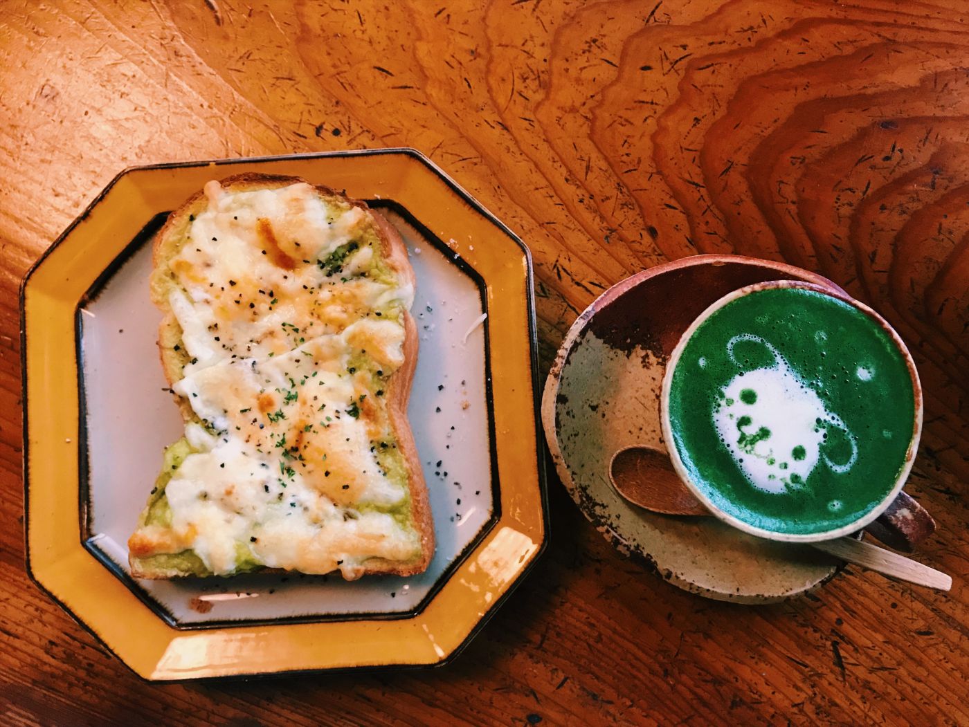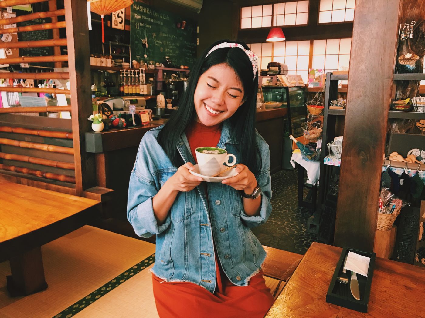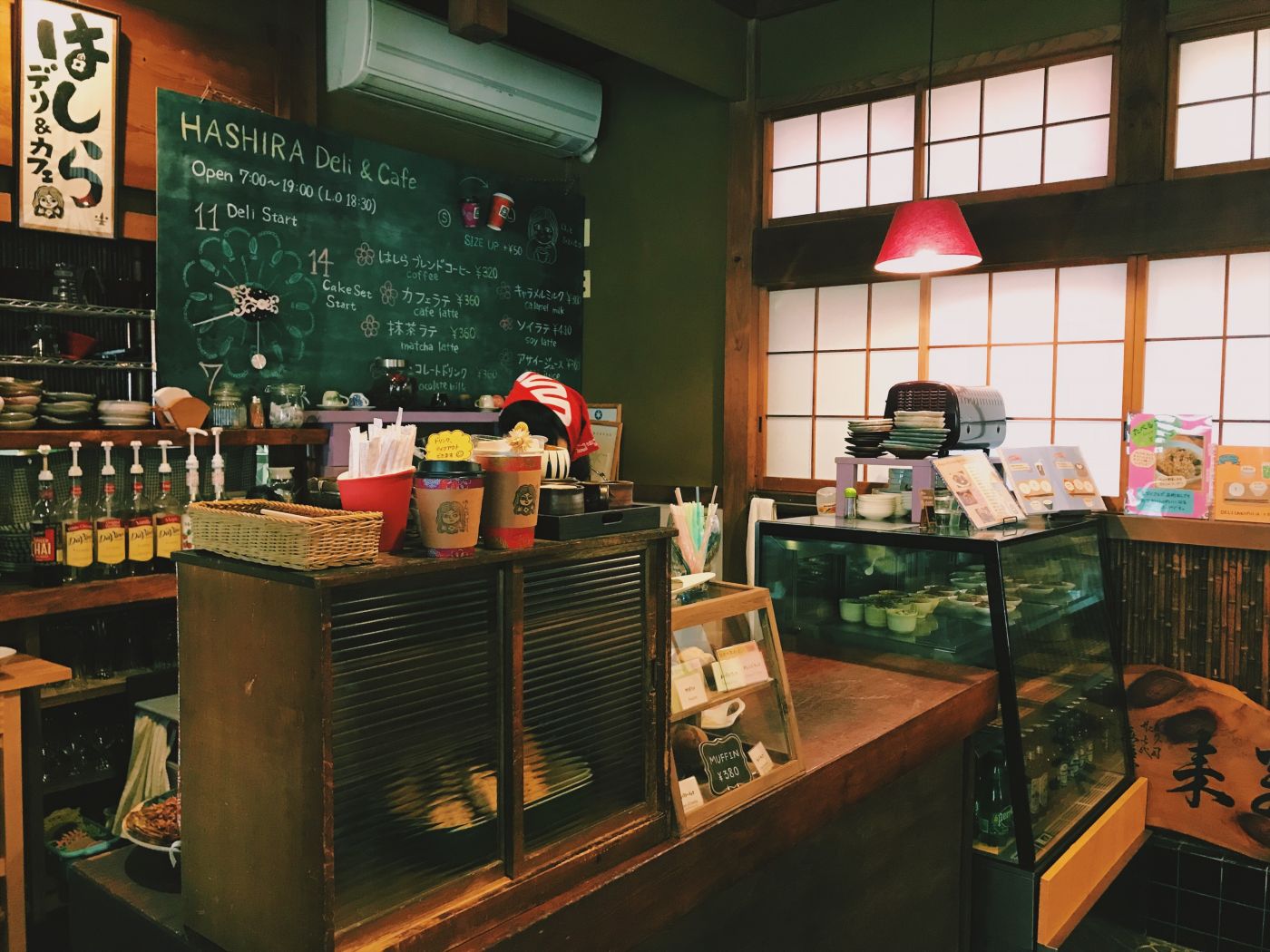 เราเลยตื่นเช้าเพื่อมานั่งจิบลาเต้ชาเขียวร้อนๆที่ Hashira Deli & Cafe