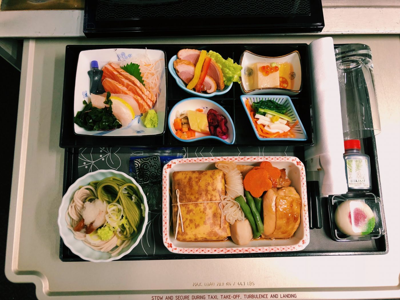 ส่วนอาหารเย็นนั้นเราก็ซื้อของจากซุปเปอร์มาร์เก็ตใน AEON Mall ขึ้นไปกินบนเครื่องจ้า