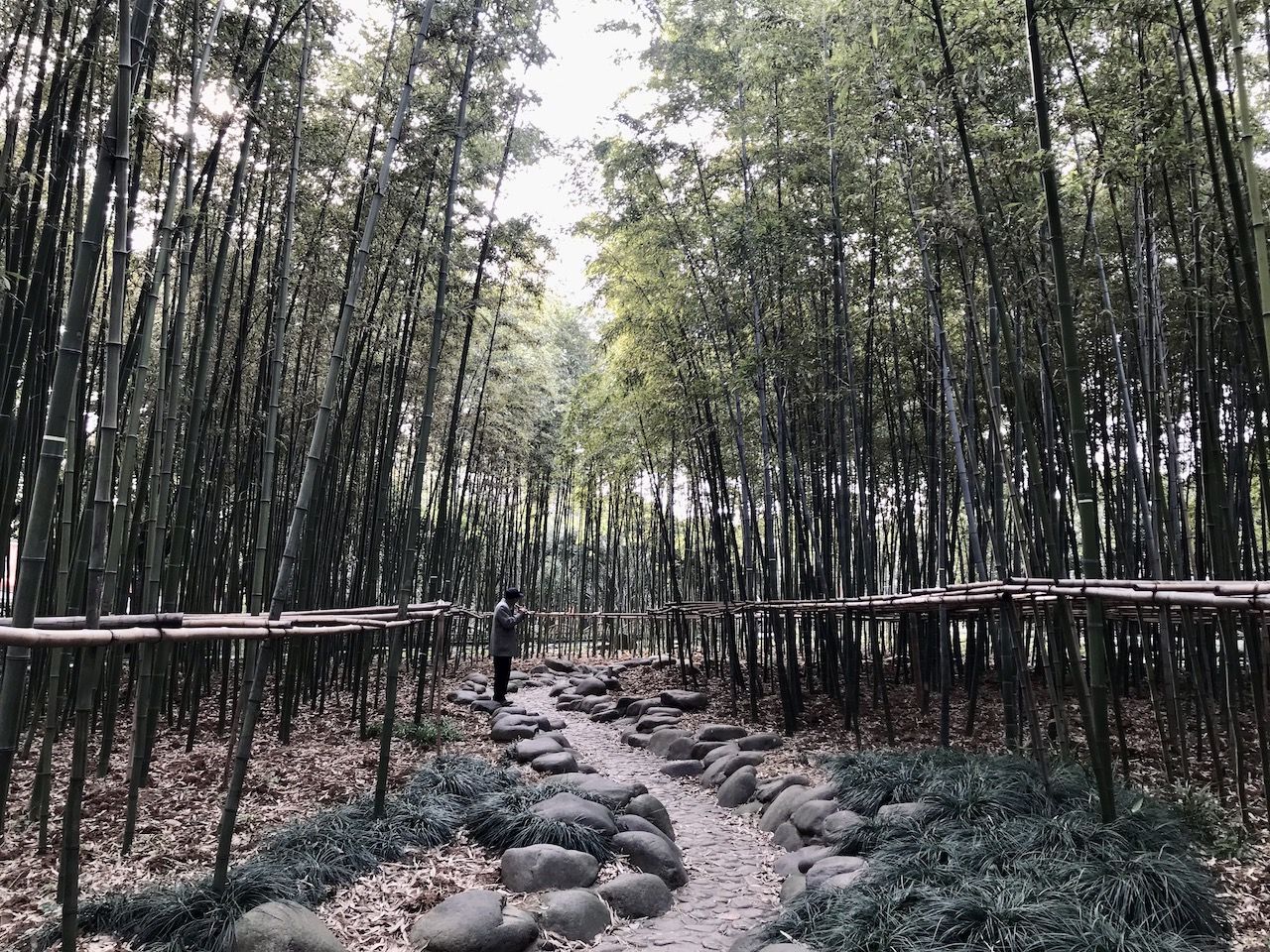 ด้านในเป็นต้นไผ่จำนวนมาก มีความเป็นซีนในภาพยนตร์เรื่องจอมใจบ้านมีดบินมาก ๆ ค่ะ ฟังเสียงไผ่ลู่ไปตามลมผสมกับเสียงขลุ่ยที่ดังแว่วมาเรื่อย ๆ ซึ่งตอนนั้นเราคิดในใจว่าดี๊ดีจังเลยแหะเขาเปิดในสวนเพลงกันด้วยแหะเพราะมันเข้ากับบรรยากาศมาก ได้ยินแล้วใจสงบ แต่ปรากฎว่าเสียงขลุ่ยที่ได้ยินนั้นไม่ได้มาจากการเปิดเพลงแต่อย่างใด กลับกลายว่าต้นเสียงนั้นมาจากคุณลุงท่านนี้ที่มายืนเป่าขลุ่ยท่ามกลางป่าไผ่ค่ะ