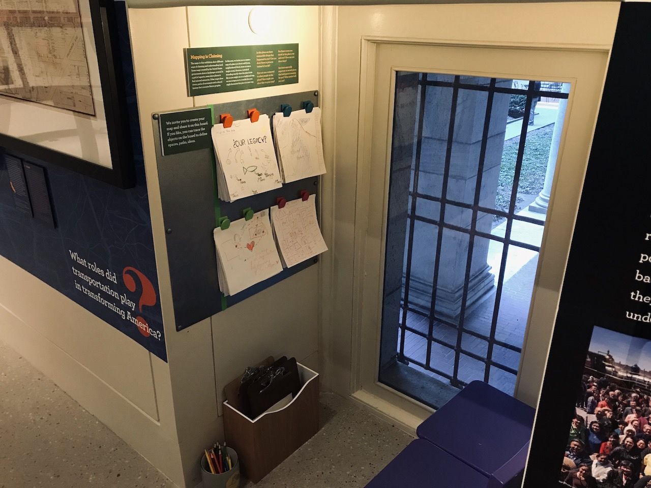 และเมื่อเข้ามาถึงอาคารด้านหลังจะพบกับห้องจัดงานนิทรรศการที่สลับสับเปลี่ยนหมุนเวียนกับไปตลอดปี ประชาชนสามารถเดินเข้าไปชมได้ฟรีโดยไม่เสียค่าใช้จ่ายเลยค่ะ และนิทรรศการที่กำลังจัดแสดงอยู่ในนี้มีชื่อว่า America Transformed ซึ่งเกี่ยวกับเรื่องการเติบโตและการวางผังเมืองในสหรัฐอเมริกาค่ะ