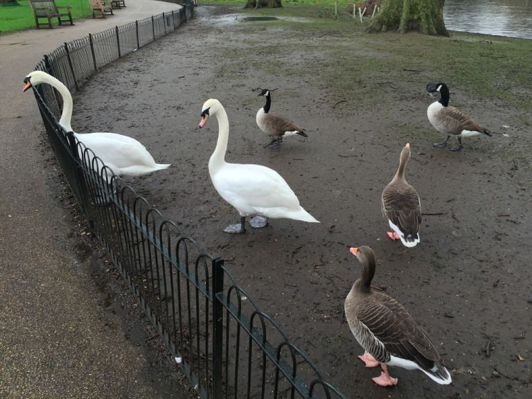 St. James Park ซึ่งบรรยากาศก็น่ารักดี เริ่มมีดอกไม้นิดๆหน่อยๆพอให้มีสีสันตัดกับอากาศเทาๆท้องฟ้าทึมๆ ฝนลงเม็ดมาอีกครั้ง เอาจริงๆคือโรแมนติกเหมือนมาเดินเล่นเดทในสวนสาธารณะมาก ฮาาาา