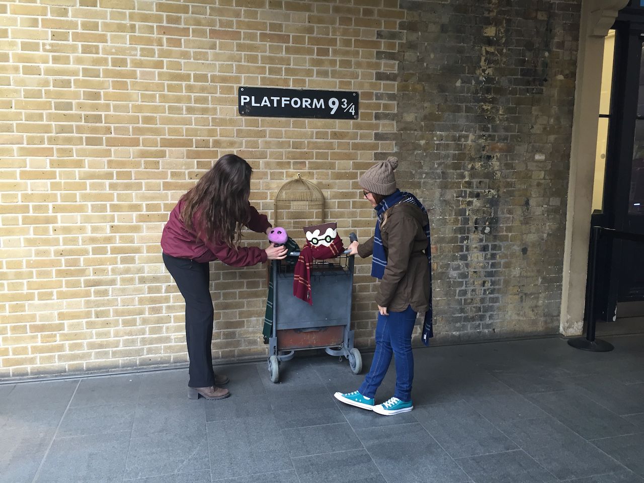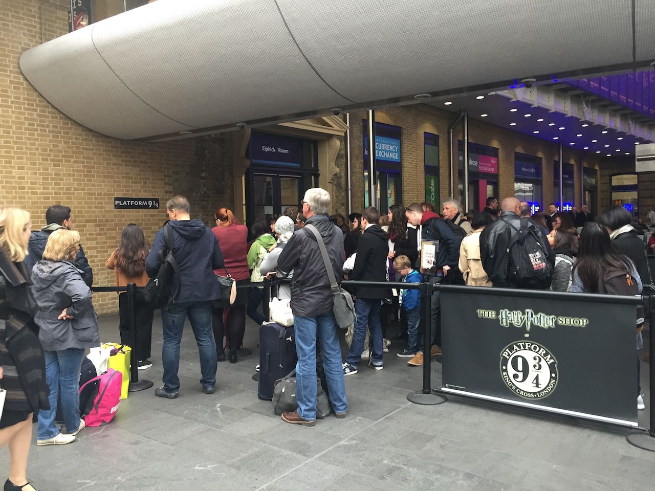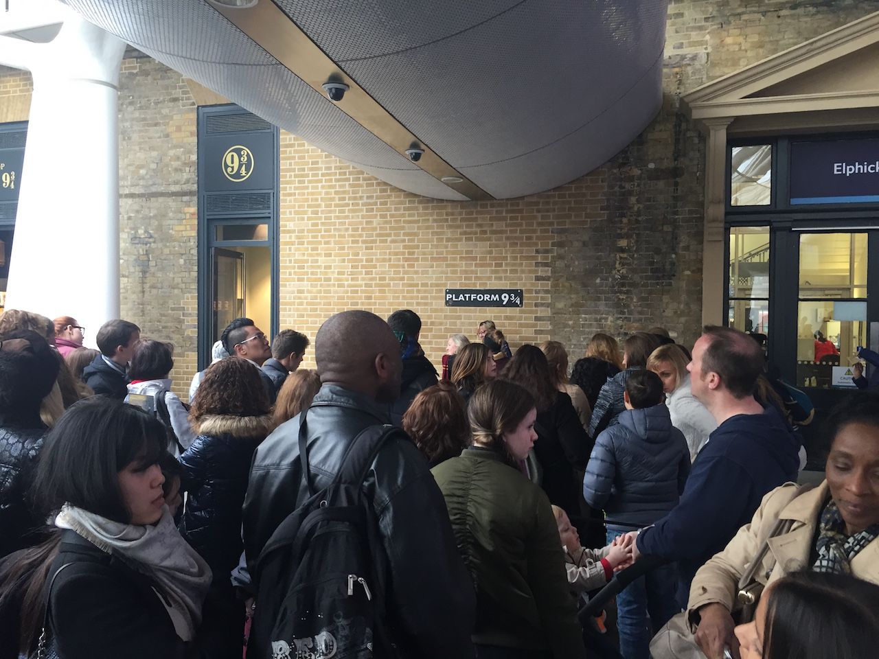 ตรงจุดที่ถ่ายรูปจะมีพนักงานสาวสามคนคอยช่วยกันจัดแถวผู้คนให้เป็นระเบียบไม่ให้ยาวเกินจนไปรบกวนผู้โดยสารท่านอื่นที่ใช้บริการรถไฟ อีกคนนึงคอยถือกล้องถ่ายภาพ อีกคนเป็นคนยืนแจกผ้าพันคอให้กับนักท่องเที่ยว มีการบลัฟกันไปมาระหว่างกริฟฟินดอร์และสลิธรีนด้วย คนก็ขำกันเฮกันเป็นพักๆ ที่พีคสุดคือมีน้องคนนึงเดินมาขอผ้าพันคือฮัฟเฟิลพัฟ ทุกคนปรบมือให้เป่าปากเชียร์ เพราะแต่ละคนก็ต่างแย่งชิงบ้านอื่นกันทั้งสิ้น