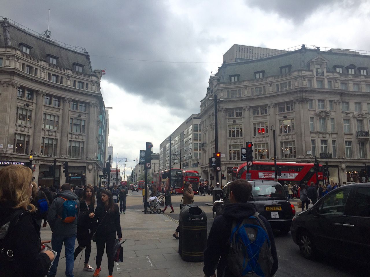 สำหรับวิวสองข้างทางก็ลอนดอนในม่านฝนนั่นแหละ ความดีงามคือผู้ลอนดอนหน้าจืดๆตัวสูงๆใส่โค้ทยาวแล้วถือร่มเดินกันขวักไขว่ ดีงาม เวลารถติดแล้วมองคนข้ามถนนไปมาก็จะหวีดร้องอยู่ในใจ ฟิลลิ่งคิงส์แมนม๊กมาก และนอกจากนี้การขึ้นบัสมาก็มีข้อดีเหมือนกันนะเพราะแม้ว่ารถจะติดแต่ก็ได้เห็นเมืองในหลายๆมุมดี