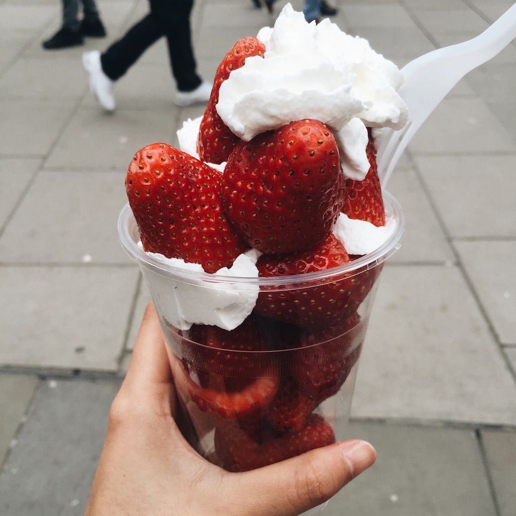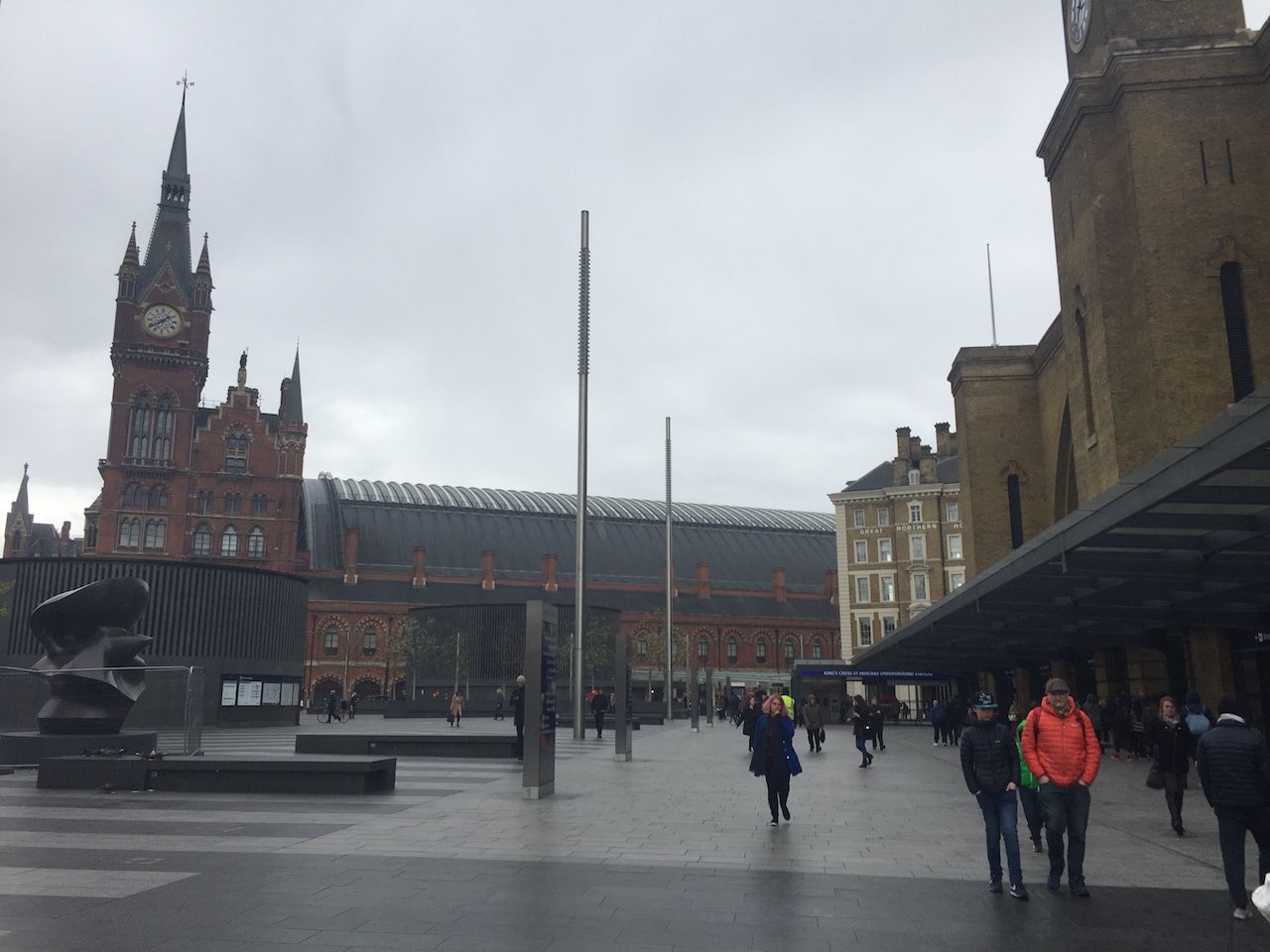 เราเดินเล่นแถวๆ Oxford Street เข้าร้านนู้นออกร้านนี้แต่ไม่ซื้ออะไรแล้ว เปลือง กินสตอร์วเบอร์รี่กับวิปครีม อร่อยดีแหละ เดินอยู่ดีๆฝนก็โปรยลงมาเลยวิ่งเข้าไปหลบในป้ายรถเมล์ เหลือบไปเห็นว่าป้ายนี้มันมีรถเมล์สาย 10 ที่ป้ายสุดท้ายที่ปลายทางคือสถานี King's Cross เลยเอาวะ โดดขึ้นไปเฉย