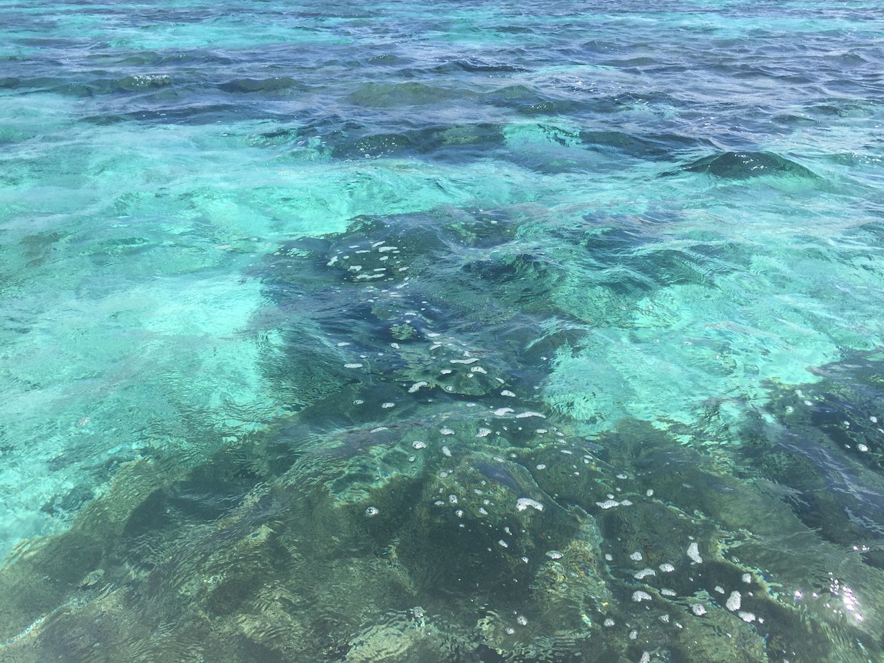 มองลงมาจากเรือจะเป็นโขดหินสลับกับปะการังน้ำตื้นตลอดเลยจ้ะ พ้นช่วงนี้ไปคือทะเลลึกคลื่นแรง