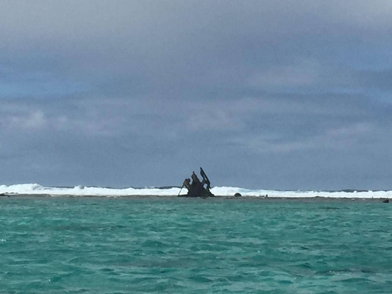 นี่คือการใช้กล้องไอโฟนซูมมมมมมมันเข้าไปค่ะ แมทธิวบอกว่าจุดนี้คือเรือสำเภาเก่าที่อับปาง ถัดจากจุดนี้ไปจะเห็นคลื่นใหญ่มาก แต่พ้นจากจุดที่เรือล่มเข้ามาจนถึงเกาะจะไม่มีคลื่นลูกใหญ่อีกเลย เหมือนเป็นแนวปะการังที่กันคลื่นไว้ เอาจริงๆก็แอบกลัวขนาดคลื่นยักษ์เหมือนกันนะ