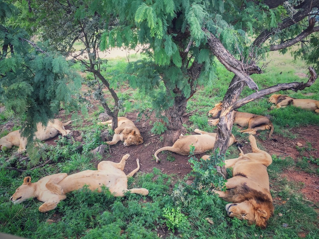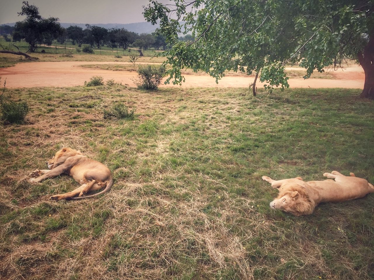 คนบรรยายในรถบอกว่าจริงๆแล้วสิงโตก็เหมือนแมวนี่แล นอนวันละ 18-20 ชั่วโมง จึงไม่แปลกใจว่าทำไมมันถึงหลับแบบหลั๊บหลับกันได้ตลอดเวลา และเขาจะให้อาหารสัปดาห์ละ 2 ครั้งโดยคำนวณเป็น 20% ของน้ำหนักตัว โดยอาหารที่ให้ไม่ได้ปล่อยกวางเข้ามาให้ล่าแบบเป็นๆนะจ๊ะเพราะว่ามันผิดเกี่ยวกับเรื่องของการทารุณสัตว์นั่นเอง