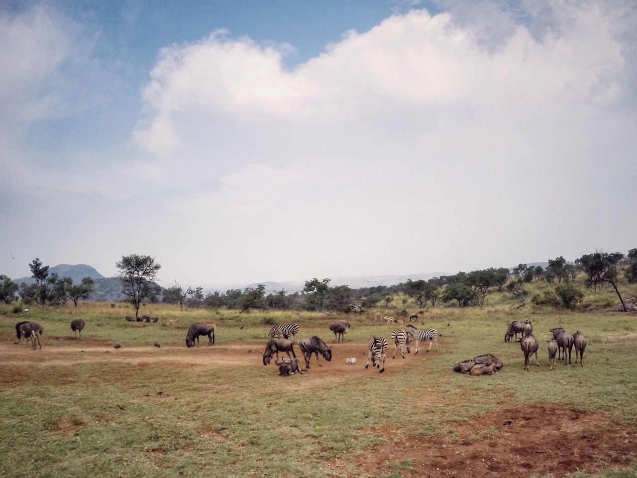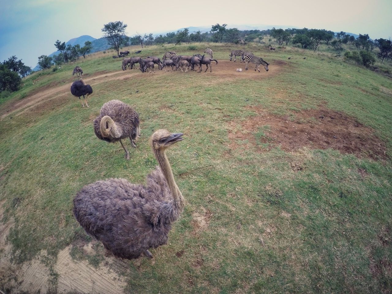 ถัดจากยีราฟเดซี่แล้วก็มาเจอกับฝูงสิ่งมีชีวิตกินพืชและเคี้ยวเอื้อง มีทั้งม้าลาย ความป่า และสปริงบ๊อก นอกจากนี้ยังมีนกกระจอกเทศสามตัวนี้เดินโย่งๆไปมา