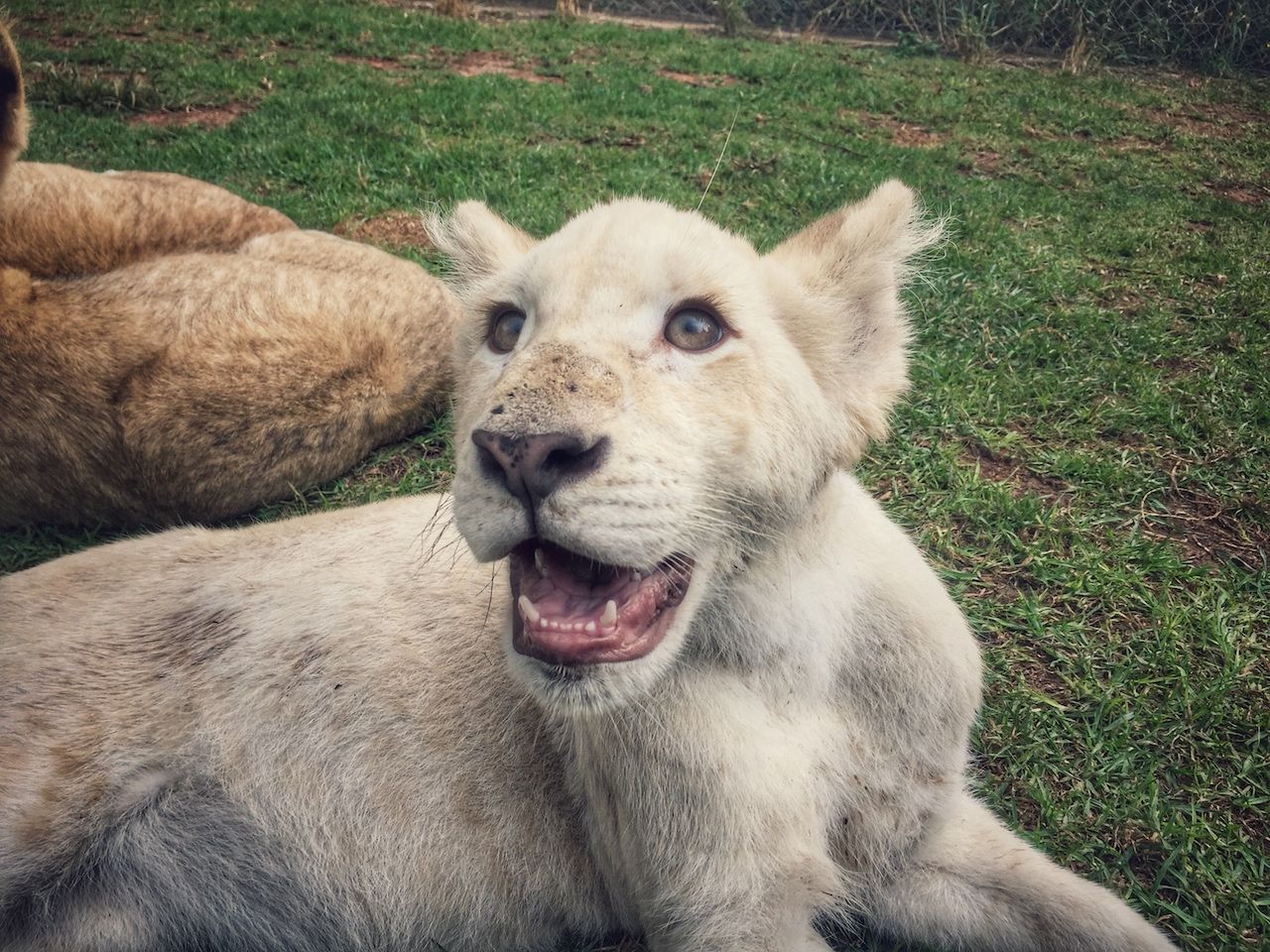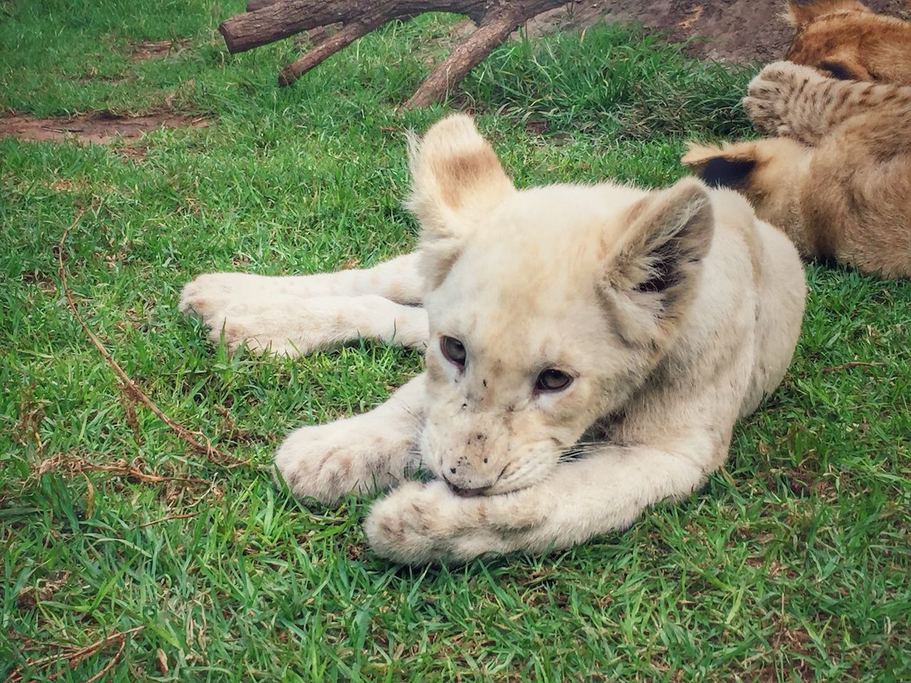 จากนั้นเราก็มาเจอกับสิงโตขาวค่ะ ซึ่งสิงโตขาวจะมีแพงคอเป็นสีอ่อนกว่าสิงโตปกติแต่ไม่ใช่สิงโตเผือกนะคะ ตามธรรมชาติแล้วสิงโตขาวมีโอกาสรอดน้อยกว่าสิงโตปกติทั่วไปเพราะไม่สามารถพรางตัวเพื่อล่าเหยื่อได้นั่นเอง