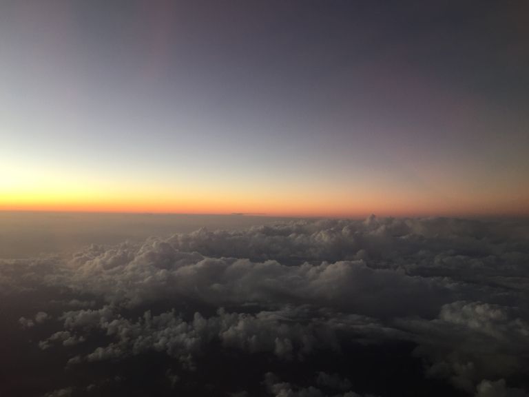 ระหว่างที่เครื่องบินค่อยๆลดระดับผ่านหมู่เมฆลงมาเรื่อยๆ เราก็นั่งนึกย้อนอดีตไปมา เชี่ยยยย วินาทีนั้นคือรู้สึกว่าตัวเองโคตรจะโชคดีเลยอะ ขอบคุณตัวเองมากๆที่สู้ที่จะได้ทำตามความฝันและเป้าหมายที่ตัวเองตั้งไว้และก็ทำสำเร็จมาตลอด ไม่ว่าจะเรื่องเรียนหรือการทำงาน ถึงจะล้มลุกคลุกคลานบ้างแต่มันคุ้มค่ามากเลยแหละ รู้สึกภูมิใจที่ตัวเองสู้จนกระทั่งมีวันนี้ ที่ได้มานั่งดูพระอาทิตย์ตกที่นี่ ขอบคุณโชคชะตาและตัวเองจริงจัง