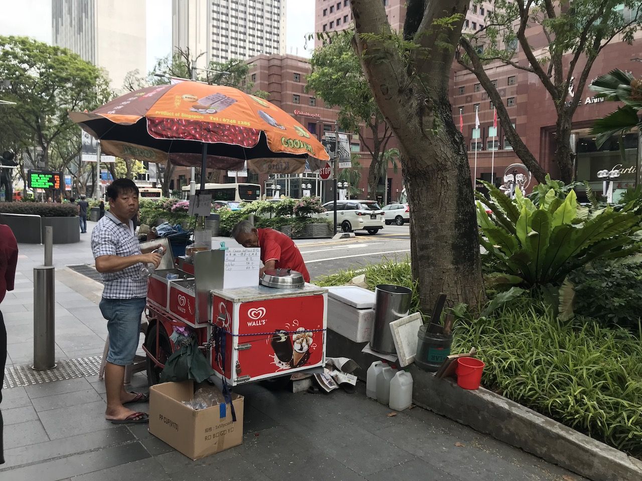 เราไปต่อกันที่ Orchad Road ถนนช้อปปิ้งของสิงคโปร์เพราะเราต้องไปซื้อของจุ๊กจิ๊กนิดหน่อย น้องเบนก็ชี้ชวนให้กินไอติมรถเข็นตรงหน้าห้างฮะ เฮ้ยยยย สิงคโปร์มีขายของตรงทางเท้าด้วยหรือนั่นนนน!!