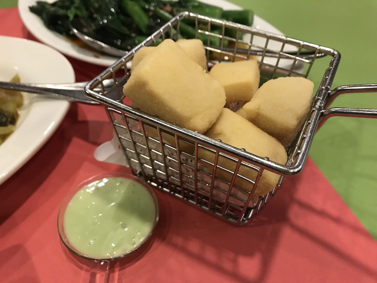 ส่วนอันนี้เป็นเต้าหู้ทอด เสิร์ฟพร้อมน้ำจิ้มวาซาบิ