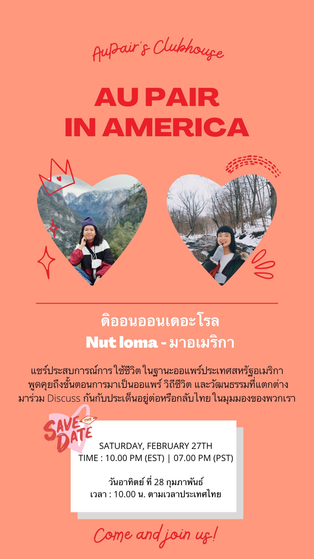 สุดท้ายและท้ายสุด ในวันอาทิตย์ที่ 28 กุมภาพันธ์นี้ เวลา 10.00 น. (ตามเวลาประเทศไทย) เราจะเปิดห้อง clubhouse มาพูดคุยกับเพื่อนๆพร้อมกับนัทโลมา จะพูดคุยกันในหัวข้อที่เกี่ยวกับออแพร์รวมถึงวิถีชีวิตของพวกเรา และร่วม discuss กันในประเด็นกลับไทยหรืออยู่ต่อด้วยค่ะ หากใครสนใจอย่าลืมมาร่วมพูดคุยกันนะคะ กดเข้าไปฟังกันที่