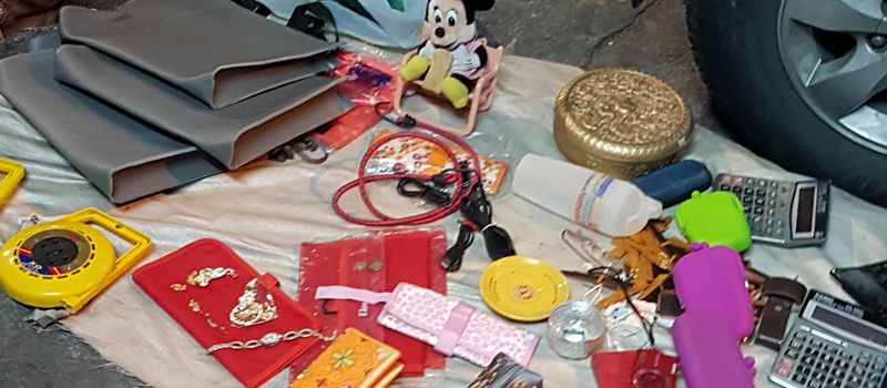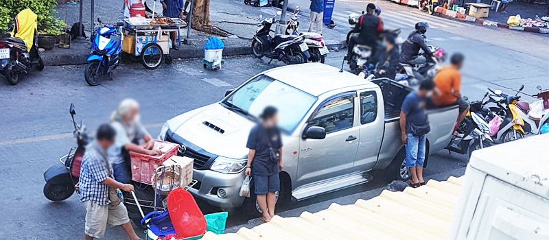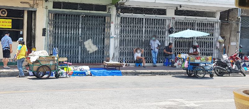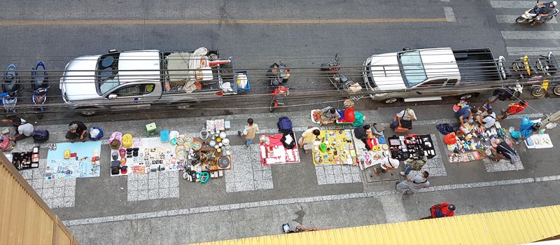 มองไปด้านนอก คนก็มานั่งขายของเรียงรายกันไปหารายได้