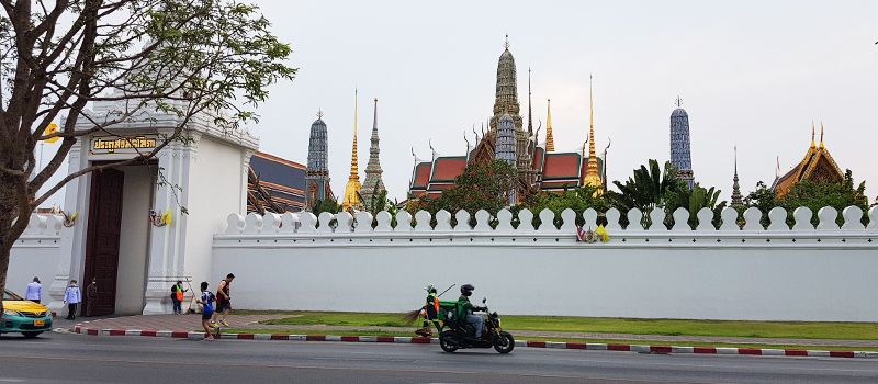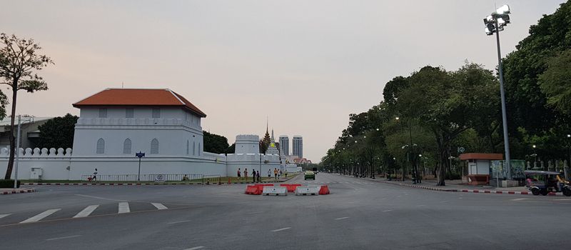 เดินผ่านวัดพระแก้วก็ไหว้ขอพรเหมือนเดิม....ทุกๆ วันที่ออกมาก็คิดว่าจะมีคนมาเดิน มาวิ่งหรือปั่นจักรยานมั้ย...วันนี้เห็นตำรวจเยอะ เจ้าหน้าที่ เลยนึกขึ้นได้ 6 เมษายน วันจักรี