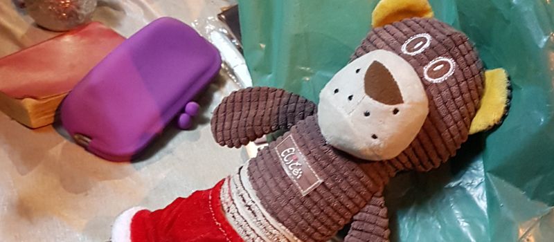 ผ้าสีน้ำเงินว่าง ก็ให้เราที่ยืนๆ ไปนั่ง เราก็สังเกตตุ๊กตาสีน้ำตาลก็ถามยังไม่มีใครซื้อเหรอ เห็นมาตั้งนาน ตอนที่พี่เขาซื้อมาก็เอามาโชว์ให้เราดู...พี่เขาก็บอก 10 บาทยังไม่มีใครเอาเลย..เราก็บอกเป็นมาสคอตประจำร้าน