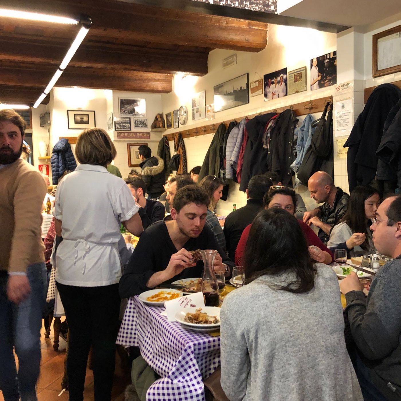 Fiaschetteria - Trattotia Mario ร้านนี้เปิดเฉพาะมื้อเที่ยง ขายเนื้อเป็นหลัก โดยเนื้อหนึ่งชิ้น ลำพังฉันคือแบ่งกินได้สามวันอะ พาสต้าเป็น menu of the day มีอย่างเดียวไม่ต้องเลือกจ้ะ เมนูแปะไว้บนฝาผนังเป็นภาษาอิตาเลี่ยน ไม่มีเมนูให้มาดูที่โต๊ะนะเธอ สั่งๆไปเถอะ ตามโต๊ะข้างๆก็ได้ (อย่าพูดว่าโต๊ะข้างๆดีกว่า โต๊ะเดียวกันนี่ล่ะ ศอกจะติดกันอยู่แล้ว แน่นมาก แชร์โต๊ะเท่านั้น)